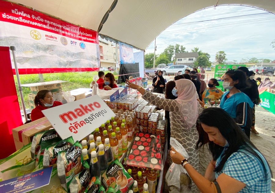 คุณจุรินทร์ ลักษณวิศิษฏ์ รมว.กระทรวงพาณิชย์และคุณวิชัย โภชนกิจ อธิบดีกรมการค้าภายใน ร่วมกับแม็คโคร โดยมี คุณพนารัตน์ ไชยแก้ว ผจก.แม็คโครสาขาหาดใหญ่ เป็นตัวแทนในการแถลงข่าวแม็คโครรับซื้อปลากระพงขาว จากเกษตรกรที่ได้รับผลกระทบจากผลผลิตล้นตลาด พร้อมเยี่ยมชมบูธในงานพาณิชย์ลดราคาช่วยประชาชน ที่ตลาดคลองแห อำเภอหาดใหญ่ จ.สงขลา