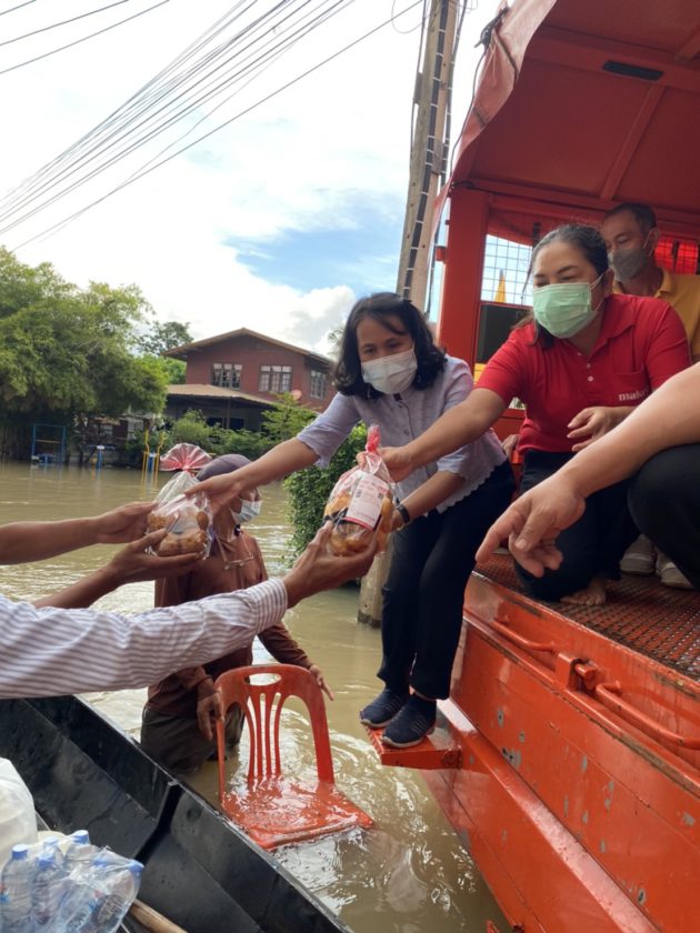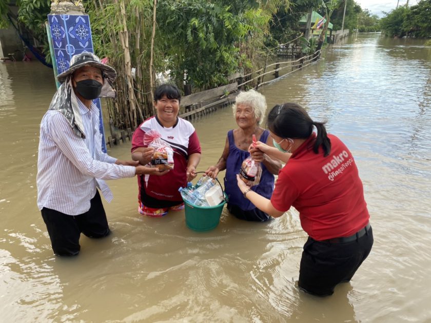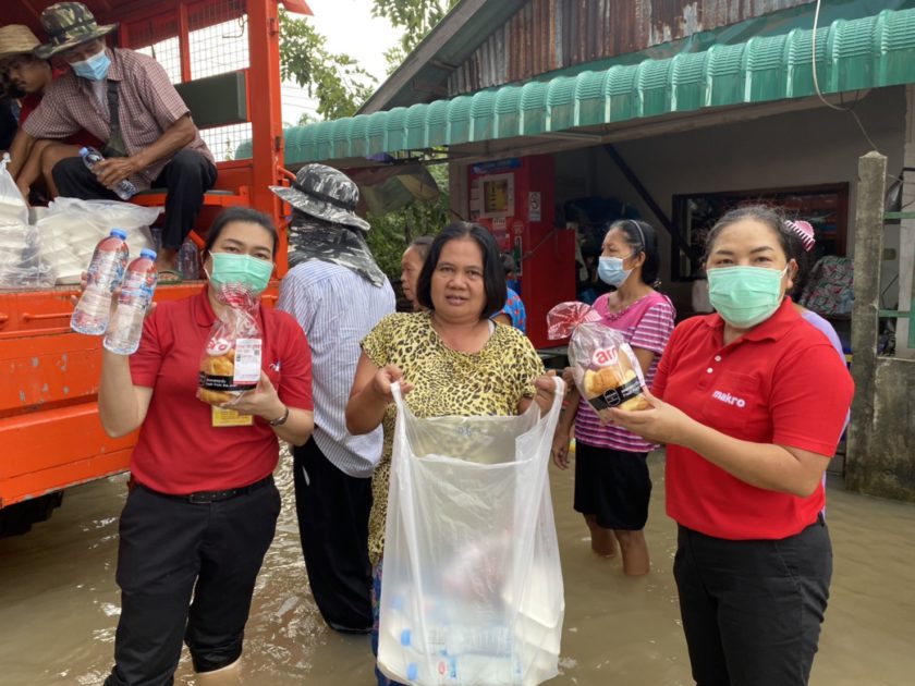 พนักงานแม็คโครสาขาโคราช1 นำอาหารและสินค้าจำเป็น ส่งมอบให้ประชาชนที่ได้รับผลกระทบจากน้ำท่วม อ.เมือง จังหวัดนครราชสีมา เพื่อบรรเทาความเดือดร้อน อย่างทันท่วงทีในวันนี้ 22 ตค. 2564