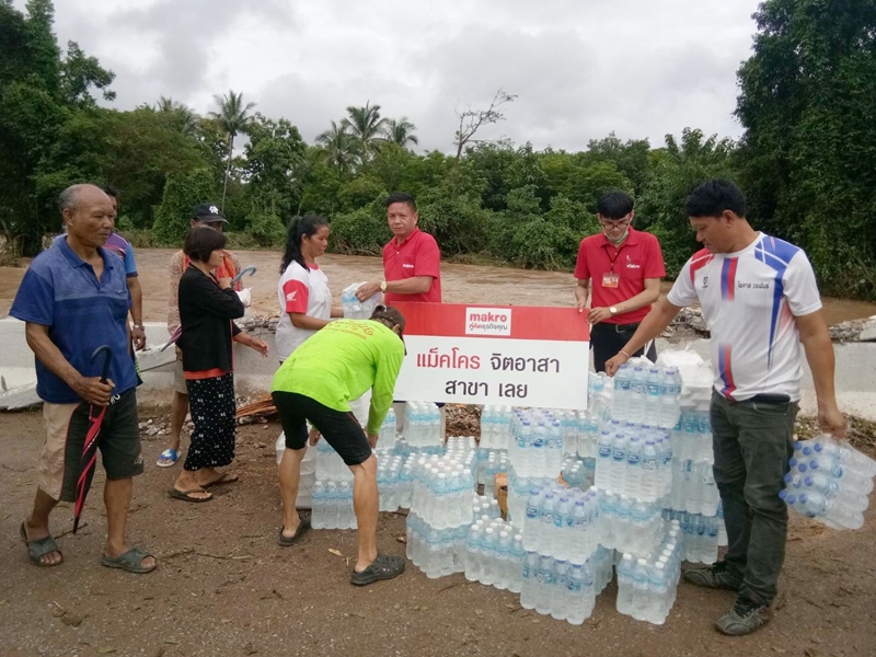 สืบเนื่องจากผลกระทบจากพายุซินตากูทำให้เกิดน้ำหลากท่วมที่อยู่อาศัยของพี่น้องคนไทยในจังหวัดเลย แม็คโคร จิตอาสา สาขาเลย ได้นำน้ำดื่มไปมอบให้ชาวบ้าน บ้านหนองดอกบัว ตำบลน้ำสวย จังหวัดเลย เพื่อเป็นกำลังใจและบรรเทาความเดือดร้อนโดย มีป้องกันและบรรเทาสาธารณภัยจังหวัดเลยรับมอบ