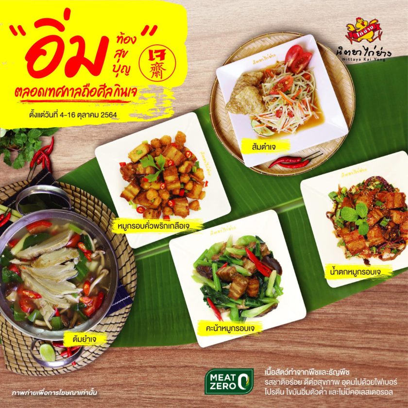 อร่อยกับหลากหลายเมนู อาทิ ส้มตำเจ หมูกรอบคั่วพริกเกลือเจ คะน้าหมูกรอบเจ น้ำตกหมูกรอบเจ ต้มยำเจ และเมนูอร่อยอีกมากมาย เด็กๆ ทานได้ ผู้ใหญ่ทานดี