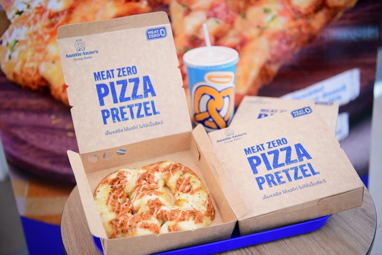 “ในปีนี้ Auntie Anne’s ยังคงจับมือกับ MEAT ZERO ซึ่งเป็นพันธมิตรที่แข็งแกร่ง ที่สร้างความมั่นใจในคุณภาพและมาตรฐานของสินค้าได้เป็นอย่างดี โดยร่วมกันต่อยอดสินค้าใหม่ MEAT ZERO Pizza Pretzel ที่นำเนื้อไก่ฉีก Spicy Shredded Chicken จาก Plant-Based มารังสรรค์คู่กับแป้งเพรตเซลสูตรเฉพาะของแบรนด์ฯ จัดเต็มด้วยชีส Mozzarella แบบเน้นๆ และส่งเสริมภาพลักษณ์ที่ดีแก่สินค้าด้วยรูปทรง Brand Logo ไปพร้อมๆ กับขยายกลุ่มลูกค้าใหม่เพิ่มเติม” คุณจันทรัตน์กล่าว