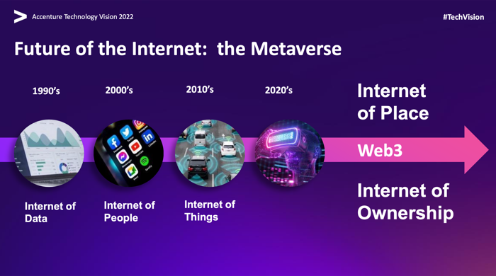 กลยุทธ์การขับเคลื่อนองค์กรที่พัฒนาขึ้นมาบนพื้นฐานของอินเทอร์เน็ตยุคปัจจุบัน ซึ่งเป็นโลกดิจิทัลที่แพลตฟอร์มต่างๆ อาจจะไม่สามารถทำงานร่วมกัน หรือโอนย้ายข้อมูลระหว่างกันได้สะดวก แต่ “Metaverse” (เมตาเวิร์ส) และ “Web3” มีความพร้อมในการกำหนดทิศทางของอินเทอร์เน็ตใหม่ โดยแทนที่จะเป็นคลังเพื่อรวมเว็บไซต์และแอปหลากหลายประเภท แต่จะมองไกลไปข้างหน้าด้วยการเป็น Metaverse ที่นำไปสู่การสร้างสภาพแวดล้อม 3 มิติต่อเนื่อง ทำให้การย้ายจาก “ที่หนึ่ง” ไปยังอีก “ที่หนึ่ง” ทำได้ง่ายเหมือนเดินออกจากห้องหนึ่งไปอีกห้องหนึ่ง