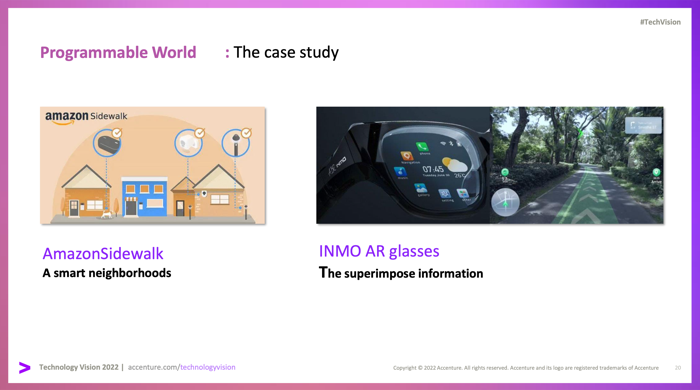 เมื่อเทคโนโลยีใหม่ๆ อย่าง 5G, Ambient Computing, AR (Augmented Reality) และอุปกรณ์อัจฉริยะต่างๆ มีความสามารถที่ล้ำหน้ามากขึ้น สภาพแวดล้อมทางดิจิทัลจะเชื่อมโยงกันเป็นโครงสร้างของโลกทางกายภาพ สิ่งแวดล้อมเหล่านี้