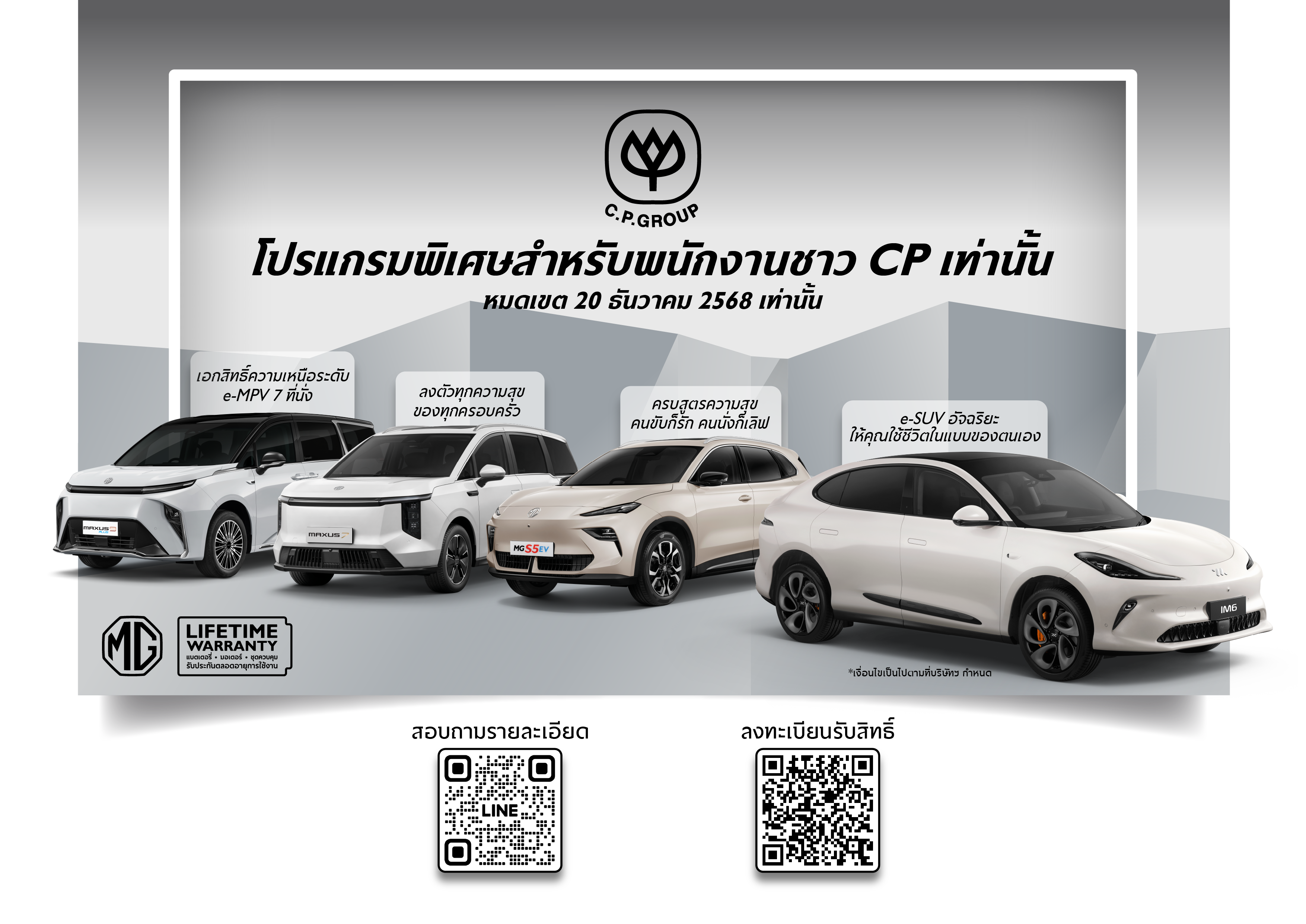 🎉 āļŠāļīāļ—āļ˜āļīāļžāļīāđ€āļĻāļĐāļŠāļģāļŦāļĢāļąāļšāļžāļ™āļąāļāļ‡āļēāļ™āđ€āļ„āļĢāļ·āļ­āļ‹āļĩāļžāļĩ! āđ‚āļ„āļĢāļ‡āļāļēāļĢāļŠāļ™āļąāļšāļŠāļ™āļļāļ™āļĢāļ–āļĒāļ™āļ•āđŒāđ„āļŸāļŸāđ‰āļē MG (CP Employee Program)