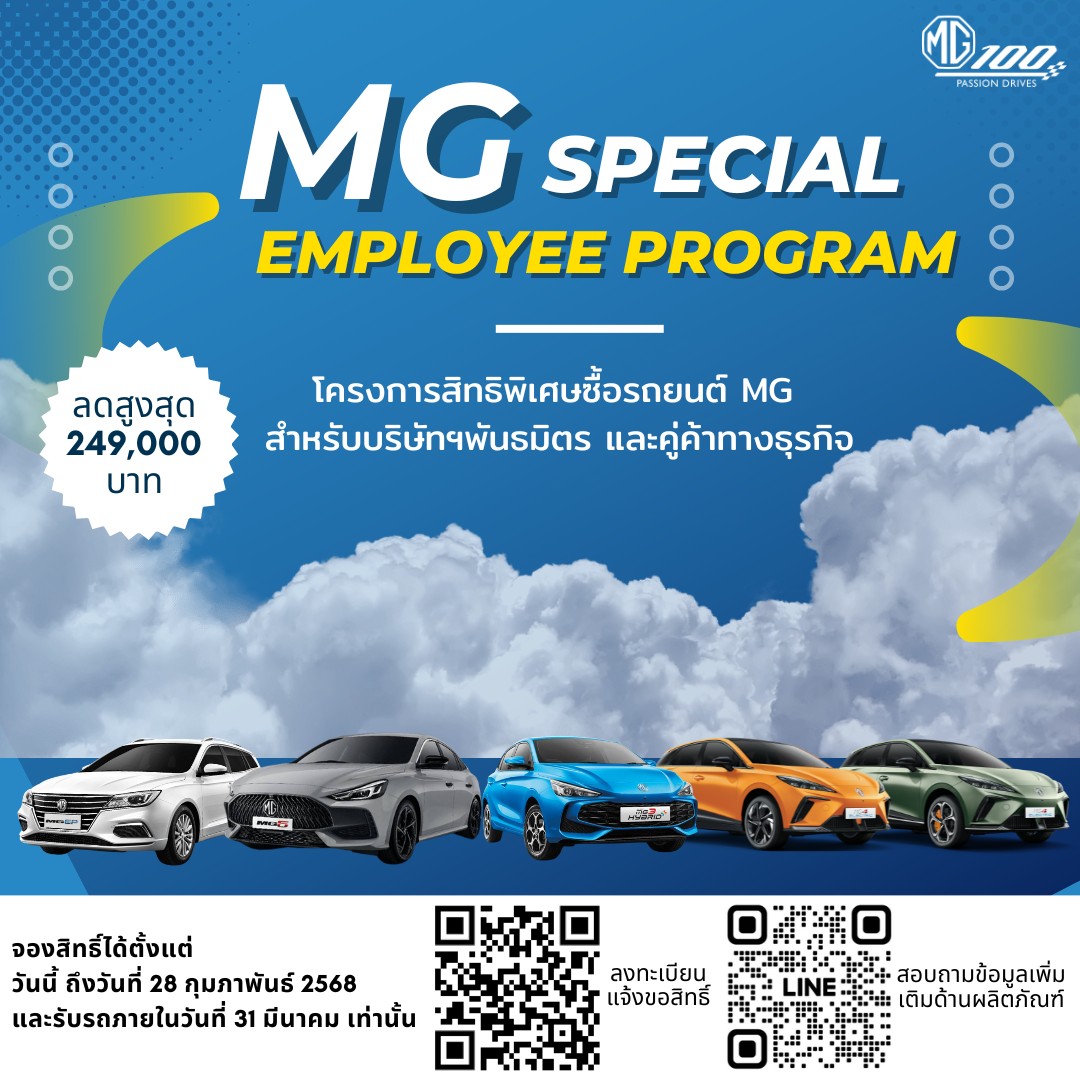 โอกาสสุดพิเศษ! สิทธิ์ซื้อรถยนต์ MG พร้อมโปรโมชั่นเฉพาะพนักงานเครือเจริญโภคภัณฑ์ 🚗✨