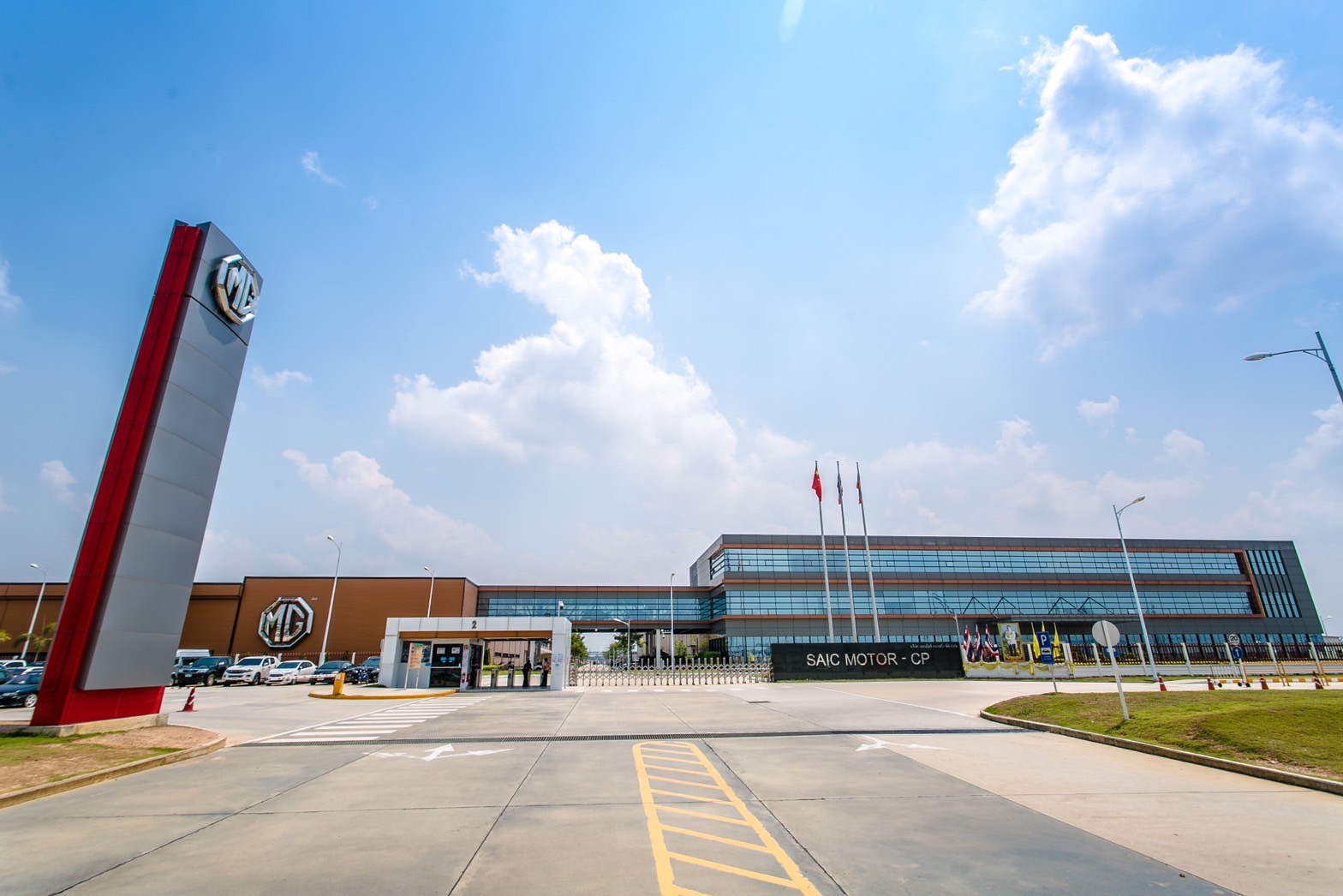 บริษัท เอสเอไอซี มอเตอร์-ซีพี จำกัด ก่อตั้งขึ้นเพื่อผลิตรถยนต์ เอ็มจี และจำหน่ายภายในประเทศไทย รวมทั้งการส่งออกไปจำหน่ายยังประเทศต่างๆ ในภูมิภาคอาเซียน โดยโรงงานตั้งอยู่ที่นิคมอุตสาหกรรมดับบลิวเอชเออีสเทิร์นซีบอร์ด 2 (WHA ESIE 2) จังหวัดชลบุรี บนพื้นที่กว่า 437.5 ไร่ มีกำลังการผลิตสูงสุดอยู่ที่ 100,000 คันต่อปี ประกอบด้วย โรงงานประกอบตัวถัง (General Assembly Shop) โรงงานพ่นสีรถยนต์ (Paint Shop) โรงผลิตตัวถัง (Body Shop) ซึ่งไลน์ผลิตทั้งหมดประกอบไปด้วยเทคโนโลยีการติดตั้งหุ่นยนต์สำหรับใช้ในสายการผลิต เพื่อช่วยอำนวยความสะดวก เพิ่มประสิทธิภาพ ตลอดจนการควบคุมคุณภาพ และเสริมสร้างความปลอดภัย ในสายการผลิต อีกทั้งยังช่วยลดปริมาณการใช้พลังงานและมลพิษต่างๆ เพื่อความเป็นมิตรกับสิ่งแวดล้อม โดยนอกจากไลน์การผลิตแล้วภายในพื้นที่ดังกล่าวยังเป็นคลังจัดเก็บอะไหล่เพื่อรองรับรถยนต์ของเอ็มจี ทุกรุ่น
