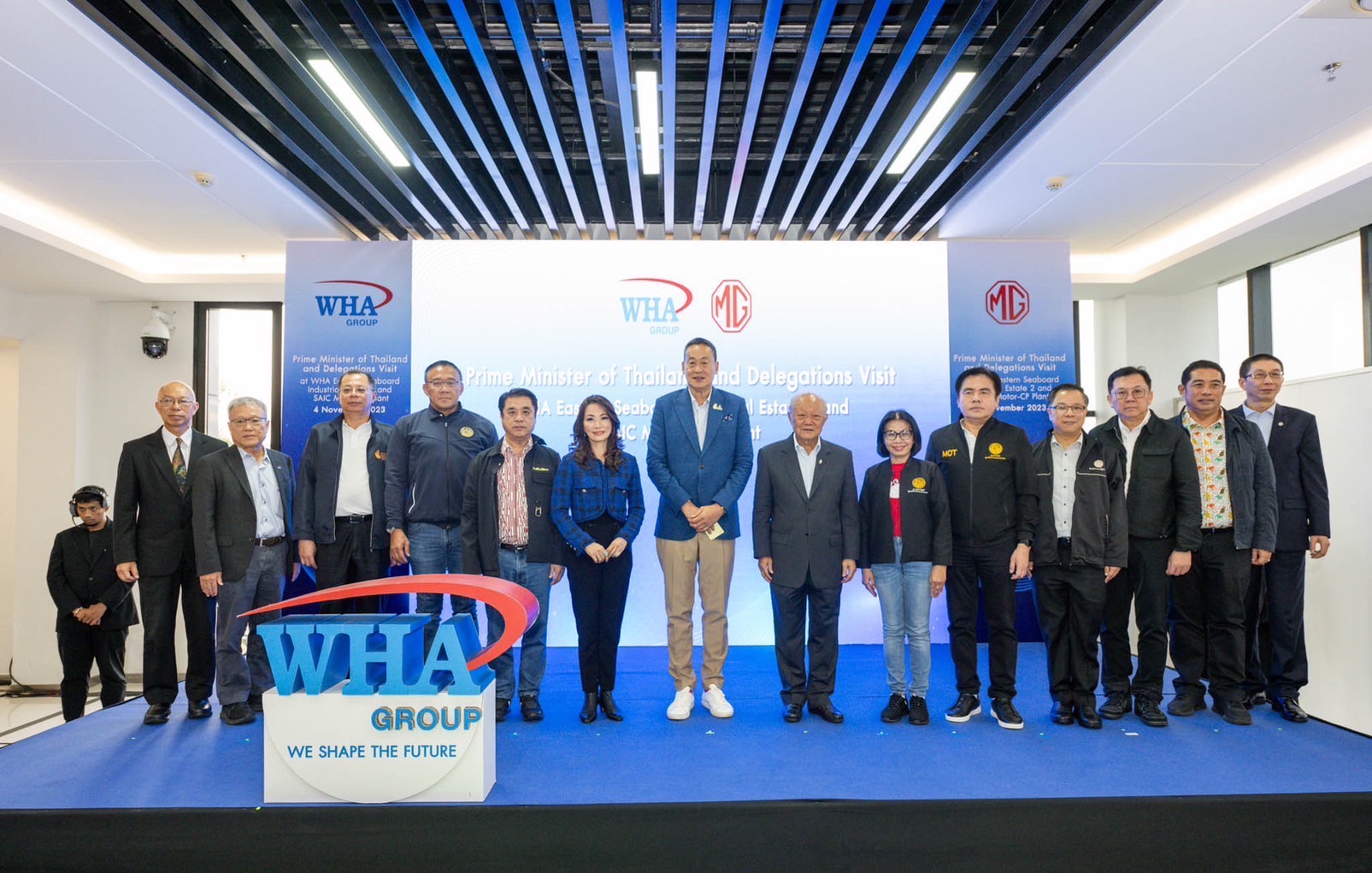 วันที่ 4 พฤศจิกายน 2566 – คุณเศรษฐา ทวีสิน นายกรัฐมนตรีและรัฐมนตรีว่าการกระทรวงการคลัง พร้อมด้วยคณะรัฐมนตรี คุณสุริยะ จึงรุ่งเรืองกิจ รัฐมนตรีว่าการกระทรวงคมนาคม คุณมนพร เจริญศรี รัฐมนตรีช่วยว่าการกระทรวงคมนาคม คุณสุรพงษ์ ปิยะโชติ รัฐมนตรีช่วยว่าการกระทรวงคมนาคม และคณะผู้บริหารระดับสูงที่เกี่ยวข้อง เข้าเยี่ยมชมโรงงานประกอบรถยนต์ และโรงงานผลิตแบตเตอรี่อีวี ของบริษัท เอสเอไอซี มอเตอร์- ซีพี จำกัด ซึ่งตั้งอยู่ภายในนิคมอุตสาหกรรมดับบลิวเอชเออีสเทิร์นซีบอร์ด 2 หรือ WHA ESIE 2 จังหวัดชลบุรี ในโอกาสเดินทางลงพื้นทีจังหวัดชลบุรี และระยอง ตรวจเยี่ยมโครงการสำคัญและอุตสาหกรรมเป้าหมายในการขับเคลื่อนโครงการเขตพัฒนาพิเศษภาคตะวันออก หรือ EEC เพื่อสร้างความเชื่อมั่นให้นักลงทุนต่างชาติ โดยมี คุณธนากร เสรีบุรี รองประธานอาวุโส เครือเจริญโภคภัณฑ์ และ ประธานกรรมการ บริษัท เอสเอไอซี มอเตอร์-ซีพี จำกัด พร้อมด้วย คุณนพดล เจียรวนนท์ รองประธานกรรมการ กลุ่มธุรกิจยานยนต์และอุตสาหกรรม คุณนกุล เจียรวนนท์ รองประธานกรรมการ กลุ่มธุรกิจยานยนต์และอุตสาหกรรม มร.จ้าว เฟิง (Mr. Zhao Feng) กรรมการผู้จัดการ บริษัท เอสเอไอซี มอเตอร์ – ซีพี จำกัด คุณสุโรจน์ แสงสนิท รองกรรมการบริหาร บริษัท เอสเอไอซี มอเตอร์-ซีพี จำกัด คุณจรีพร จารุกรสกุล ประธานคณะกรรมการบริหาร และประธานเจ้าหน้าที่บริหารกลุ่ม และประธานเจ้าหน้าที่บริหาร บริษัท ดับบลิวเอชเอ คอร์ปอเรชั่น จำกัด (มหาชน) และคณะผู้บริหาร บริษัท เอสเอไอซี มอเตอร์-ซีพี จำกัด ร่วมให้การต้อนรับ
