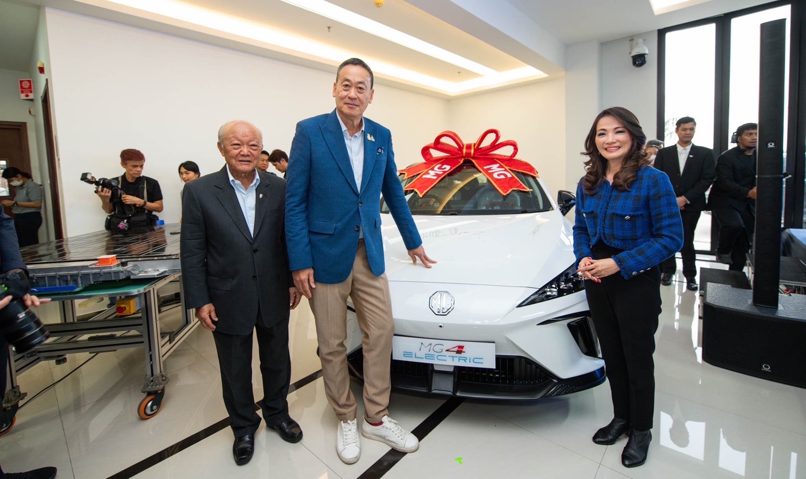 ทั้งนี้ นายกรัฐมนตรีและคณะรัฐมนตรี ให้ความสนใจในกระบวนการผลิตรถยนต์ที่มีความทันสมัย ของบริษัท เอสเอไอซี มอเตอร์-ซีพี จำกัด ในฐานะบุกเบิกตลาดรถยนต์ไฟฟ้าในประเทศไทย ซึ่งเป็นช่วงเวลาที่ประจวบเหมาะกับการที่รัฐบาลได้ลงนามแต่งตั้งคณะกรรมการนโยบายรถยนต์ไฟฟ้าแห่งชาติชุดใหม่ โดยมีมติเห็นชอบมาตรการสนับสนุนการใช้ยานยนต์ไฟฟ้า นับเป็นการกระตุ้นให้อุตสาหกรรมยานยนต์ไฟฟ้าขยายตัวอย่างต่อเนื่อง พร้อมประเดิมเปิดตัว NEW MG4 ELECTRIC Thailand Edition ในฐานะรถอีวีคันแรกของ เอ็มจี ที่ผลิตในประเทศไทย