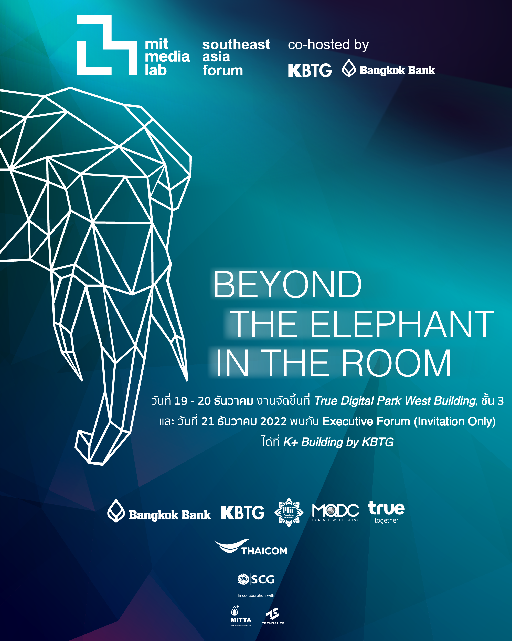 ปลายปี 2022 นี้ MIT Media Lab ร่วมกับ KBTG องค์กรเทคโนโลยีในเครือธนาคารกสิกรไทย, ธนาคารกรุงเทพ, ทรู คอร์ปอเรชั่น และ MIT Alumni Association จัดงาน “MIT Media Lab Southeast Asia Forum” งานสัมมนาระดับโลกที่จะสร้างโอกาสใหม่ๆ ในภูมิภาค ระหว่างวันที่ 19 – 21 ธันวาคม 2022