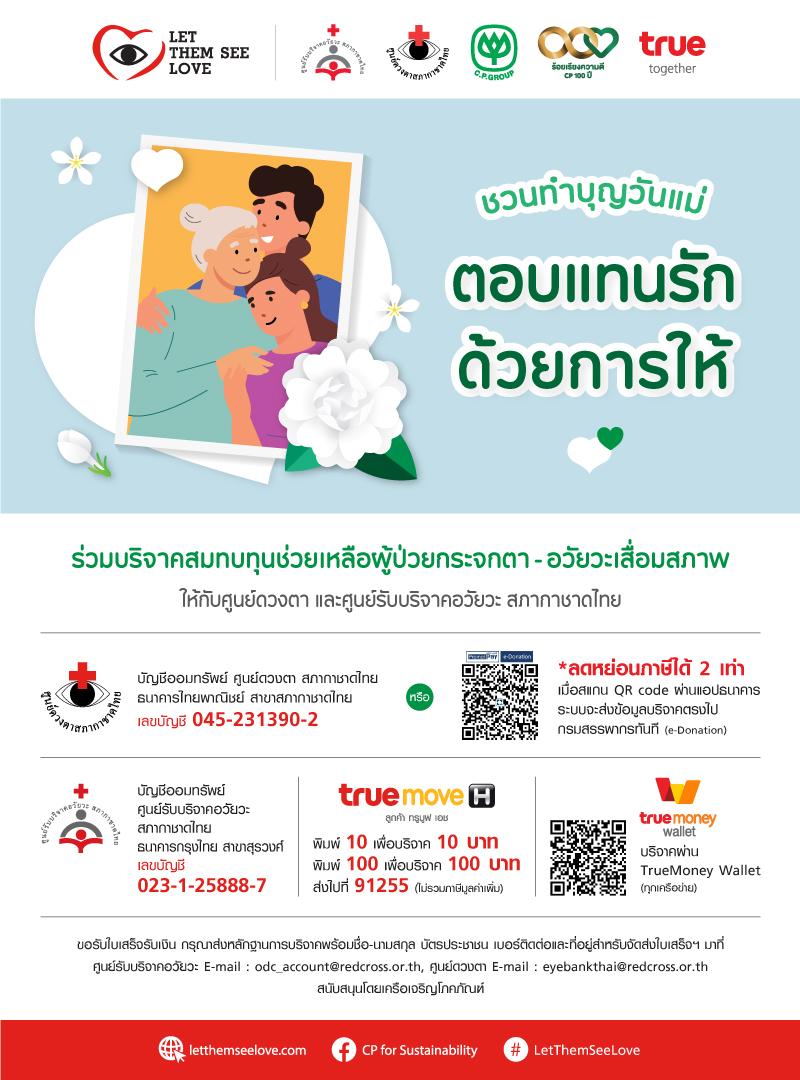 ชวนคุณแม่มาทำบุญด้วยกัน💙 เพื่อตอบแทนความรักที่ยิ่งใหญ่ สร้างกุศลร่วมกันส่งต่อการให้ไม่สิ้นสุด เพื่อต่อเติมความหวังให้ผู้ป่วยกระจกตา – อวัยวะเสื่อมสภาพ