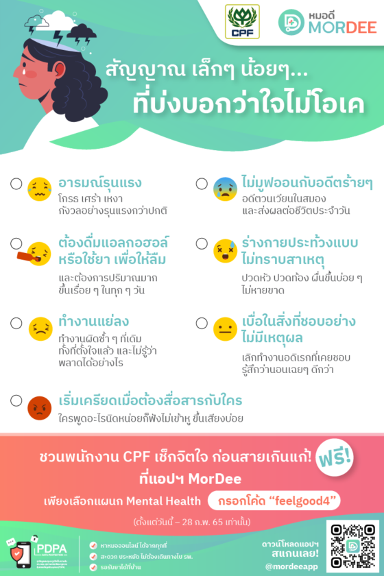 ✨พิเศษ✨สำหรับพนักงาน CPF ปรึกษาจิตแพทย์หรือนักจิตบำบัด ฟรี! ผ่านแอปฯ MorDee ด้วยขั้นตอนง่าย ๆ ดังนี้