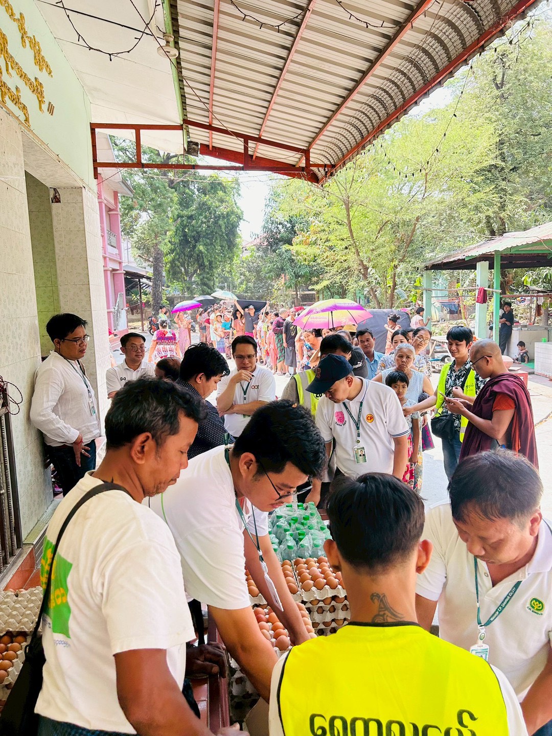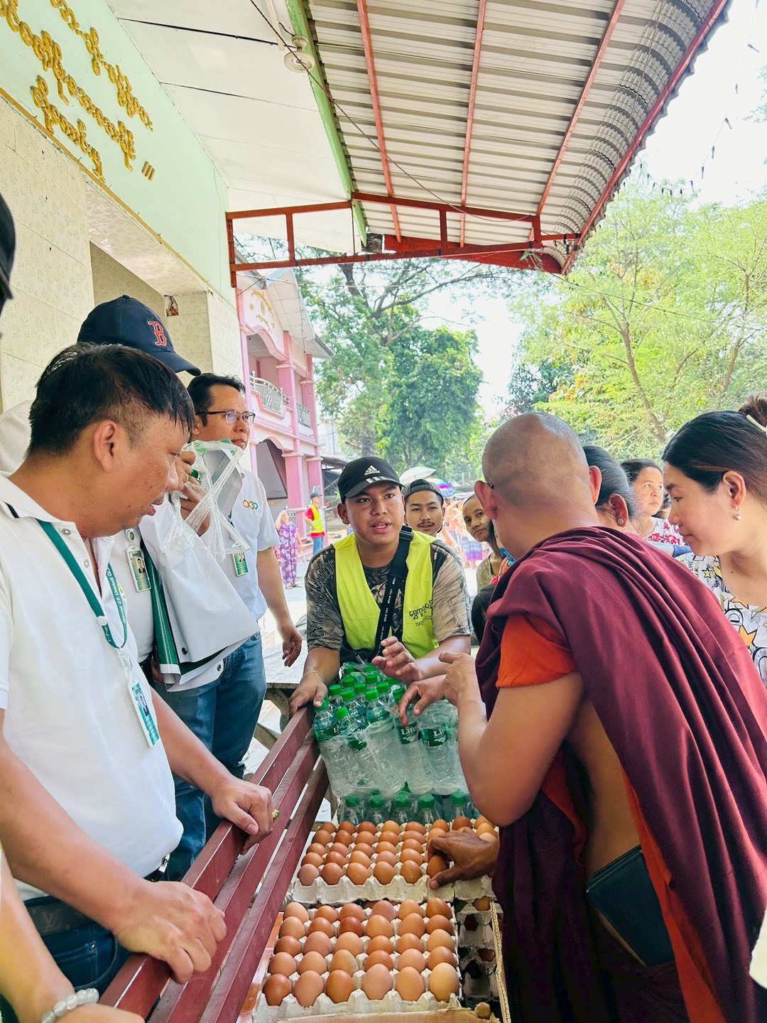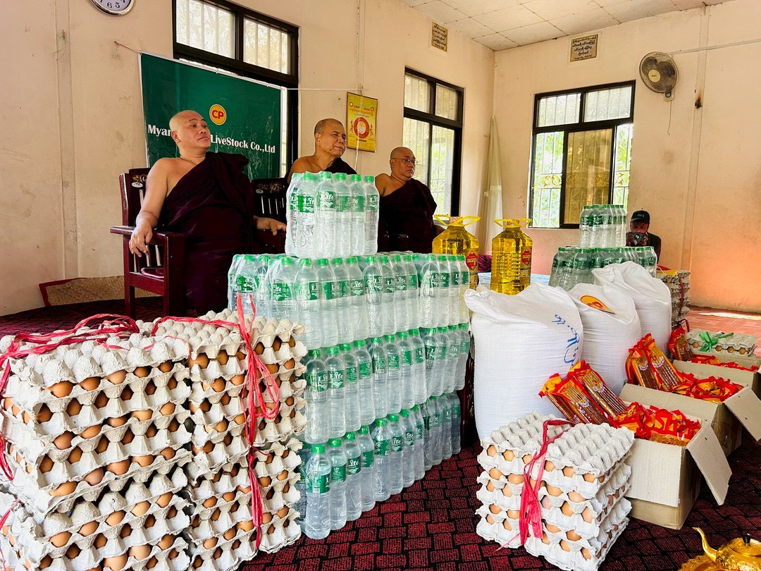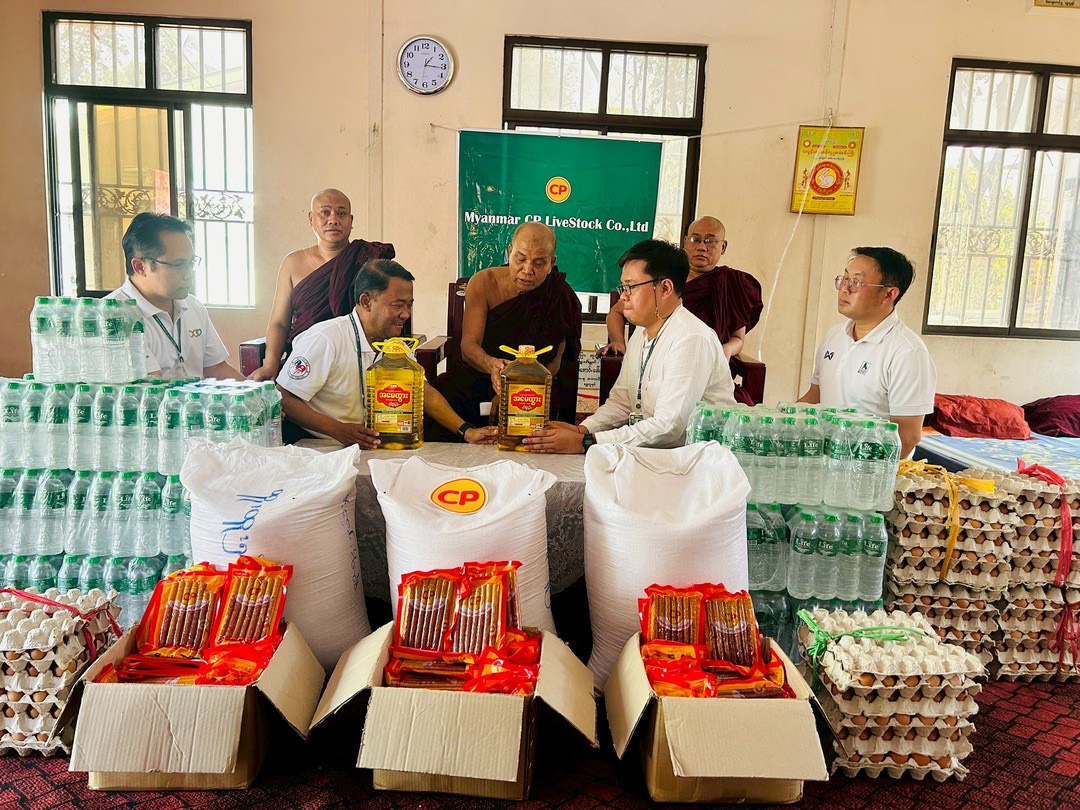 วันที่ 31 มีนาคม 2568 เหล่าจิตอาสา “ซีพีอาสา” จากซี.พี.เมียนมา ได้ร่วมเดินทางไปมอบสิ่งของจำเป็น พร้อมส่งพลังใจให้แก่ผู้ประสบภัย ณ วัด Shwe Gu Monetary Diamond Flower Monastery ซึ่งเป็นศูนย์พักพิงของผู้ได้รับผลกระทบ ท่ามกลางบรรยากาศแห่งความอบอุ่น น้ำใจจากทุกฝ่ายช่วยหลอมรวมให้ผู้คนมีพลังที่จะก้าวต่อไป เหล่าซีพีอาสาร่วมแรงร่วมใจลำเลียงอาหารและสิ่งของจำเป็น ส่งตรงถึงมือผู้เดือดร้อน ท่ามกลางรอยยิ้มแห่งความหวังและคำขอบคุณที่เต็มไปด้วยความซาบซึ้ง สำหรับสิ่งของที่นำไปมอบในครั้งนี้ ได้แก่ น้ำดื่มขนาด 0.6 ลิตร จำนวน 100 ขวด, ไข่ไก่ 1,000 ฟอง, ไส้กรอกไก่ 150 แพ็ค และน้ำมันถั่วเหลือง เพื่อช่วยบรรเทาความเดือดร้อน และเติมเต็มพลังให้พี่น้องชาวเมียนมาได้มีกำลังใจสู้ต่อไป