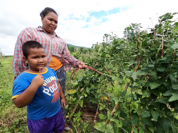 ด้าน คุณวราวุธ อ่วมเอี่ยม ชาวบ้านหมู่ 3 บ้านห้วยบง ต.พัฒนานิคม เล่าว่า ช่วงที่มีการแพร่ระบาดของโควิด ชาวบ้านในชุมชนที่ปลูกผักปลอดสารเคมีอยู่ได้ด้วยการพึ่งพาผลผลิตผักสวนครัวที่ปลูกไว้ ที่บ้านตนเองมีผักที่ปลูกไว้หลากหลายชนิด ทั้งมะเขือเทศ ถั่วดาวอินคา ผักติ้ว มะละกอ ผักไชยา ฯลฯ และถึงแม้ว่าปีนี้เกษตรกรจะเจอปัญหาภัยแล้งด้วย แต่ชาวบ้านที่ร่วมโครงการยุทธศาสตร์สร้างสุข ปลูกผักปลอดสาร ได้รับความช่วยเหลือจากซีพีเอฟนำถังพลาสติกเพื่อกักเก็บน้ำขนาด 1,000 ลิตร และอุปกรณ์ระบบน้ำหยดมาให้ ช่วยให้พืชผักที่ปลูกออกผลผลิตได้ตลอด หากไม่เกิดวิกฤตโควิด หลายคนก็คงมองไม่เห็นว่าการปลูกผักไว้บริโภคในครัวเรือนช่วยได้มาก เป็นการสร้างความมั่นคงทางอาหารอย่างแท้จริง