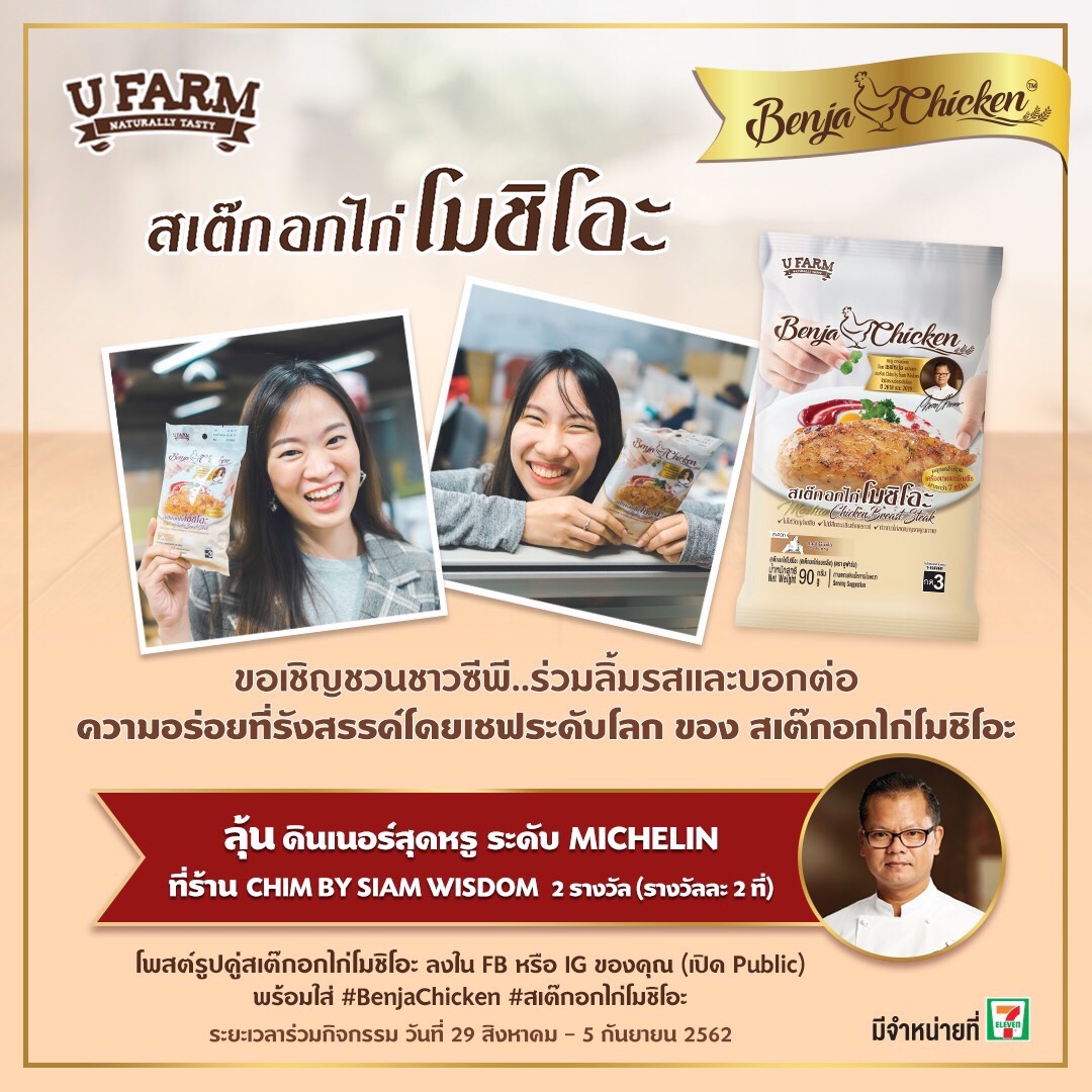 ง่ายๆเพียงโพสรูปคู่แพคหรือเมนูสเต๊กอกไก่โมชิโอะลงบน FB หรือ IG ตัวคุณเอง (เปิด public) พร้อมบอกต่อความอร่อย ใส่ #BenjaChicken #สเต๊กอกไก่โมชิโอะ แล้วรอลุ้นกันเลย…