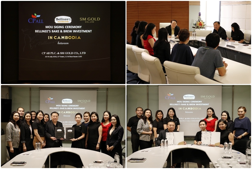 เมื่อวันอังคารที่ 30 กรกฎาคม พ.ศ. 2562 ได้มีการลงนามแสดงความจำนงในการรับสิทธิ์ดำเนินการขยายธุรกิจ Bellinee’s Bake & Brew ในราชอาณาจักรกัมพูชา นำโดย Mrs. Narkry Lim, Mrs.Srey Leng Mrs. Sreymom Ear, และ Mrs. Phally Chheang ทีมผู้บริหารจาก SM GOLD CO., LTD กับคุณชรัส ลิขิตคุณวงศ์ รองกรรมการผู้จัดการ CP ALL PLC.