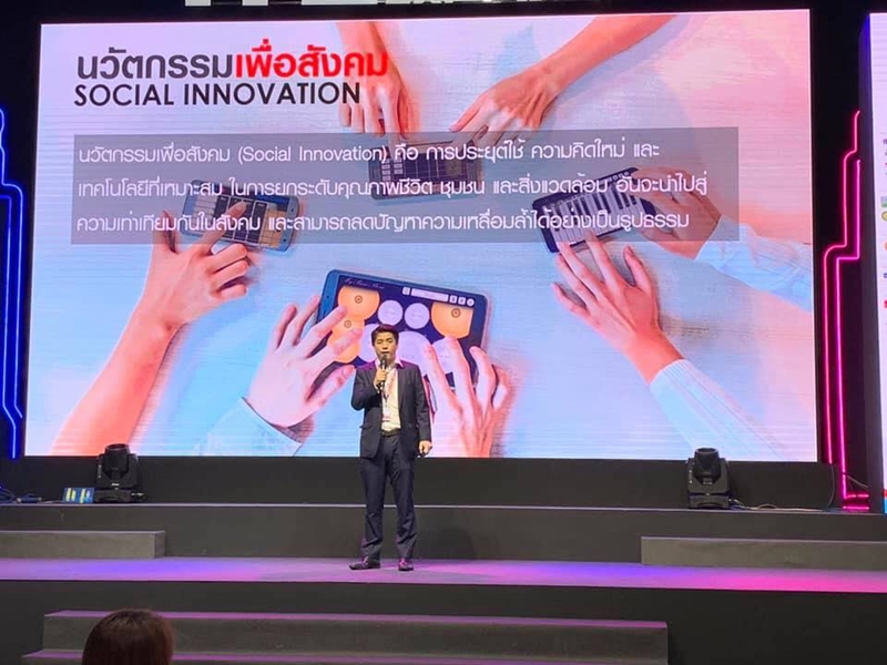 ดร.ธีระพล ถนอมศักดิ์ยุทธ ผู้ช่วยบริหาร สำนักประธานคณะผู้บริหาร เครือเจริญโภคภัณฑ์ และ หัวหน้าคณะผู้บริหาร ด้านนวัตกรรมและความยั่งยืน บมจ.ทรู คอร์ปอเรชั่น ในฐานะภาคธุรกิจที่มีบทบาทสำคัญในการขับเคลื่อนนวัตกรรมเพื่อสังคม ร่วมบรรยายในหัวข้อ “TRUE Social Innovation for Sustainability” โดยกล่าวว่า แนวคิดเรื่อง Social Innovation คือการทำธุรกิจในยุคปัจจุบัน วัตถุประสงค์ไม่ใช่แค่เรื่องเศรษฐกิจเพียงอย่างเดียว