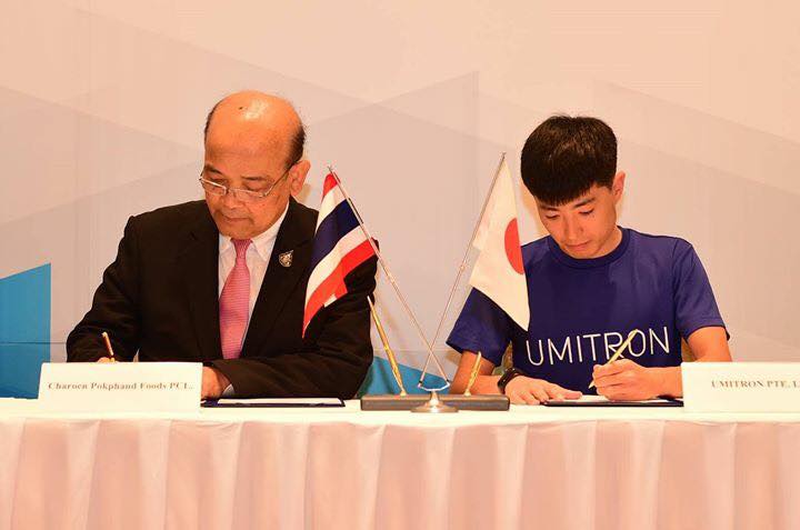 คณะผู้บริหารซีพีเอฟ นำโดย คุณประสิทธิ์ บุญดวงประเสริฐ CEO และ น.สพ. สุจินต์ ธรรมศาสตร์ ประธานผู้บริหารฝ่ายปฏิบัติการ ธุรกิจสัตว์น้ำซีพีเอฟ ลงนามบันทึกข้อตกลง กับ UMITRON สตาร์ทอัพด้านอุตสาหกรรมสัตว์น้ำของญี่ปุ่น นำเทคโนโลยีดิจิทัลขั้นสูงช่วยยกระดับอุตสาหกรรมเลี้ยงกุ้งไทยให้เกิดการพัฒนาอย่างยั่งยืน ณ ทำเนียบเอกอัครราชทูตญี่ปุ่น