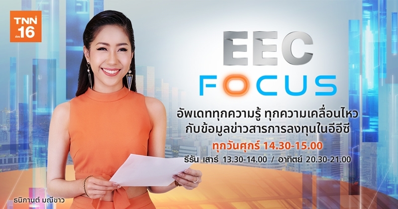 TNN เปิดตัวรายการใหม่ EEC Focus อัพเดททุกความรู้ทุกความเคลื่อนไหว การลงทุน ใน EEC รวมทั้งรายงานความคืบหน้าโครงการรถไฟความเร็วสูง ทุกวันศุกร์ เวลา 14.30-15.00 น. เริ่มเทปแรก 5 กค.