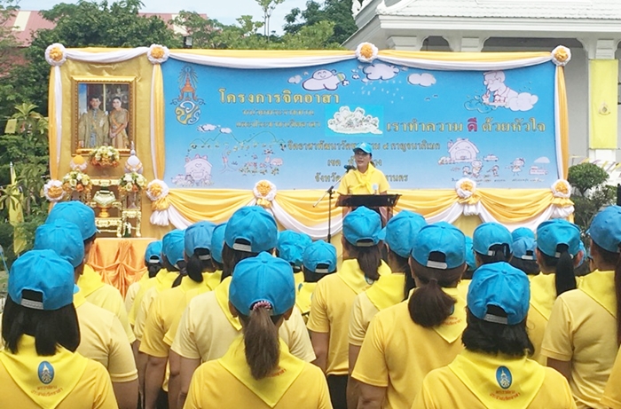โดยมีหน่วยพระราชทาน และ ประชาชนจิตอาสา พร้อมด้วย คุณธันยพจน์ สายทองอินทร์ ผู้จัดการแผนกชุมชนสัมพันธ์ ,คุณอนิรุจน์ อารมย์ดี ผู้จัดการแผนกประชาสัมพันธ์ และคณะครู นักเรียน บุคลากรจากวิทยาลัยเทคโนโลยีปัญญาภิวัฒน์ร่วมกันบำเพ็ญสาธารณะประโยชน์ โดยคณะจิตอาสาได้ร่วมกันทำความสะอาด เก็บกวาดขยะมูลฝอยและสิ่งปฏิกูลต่างๆ รวมทั้งช่วยกันปรับแต่งสถานที่บริเวณวัดให้มีความสวยงาม เป็นระเบียบเรียบร้อยทำให้สภาพแวดล้อมมีความเป็นอยู่ดีขึ้น เกิดการพัฒนาได้อย่างยั่งยืน