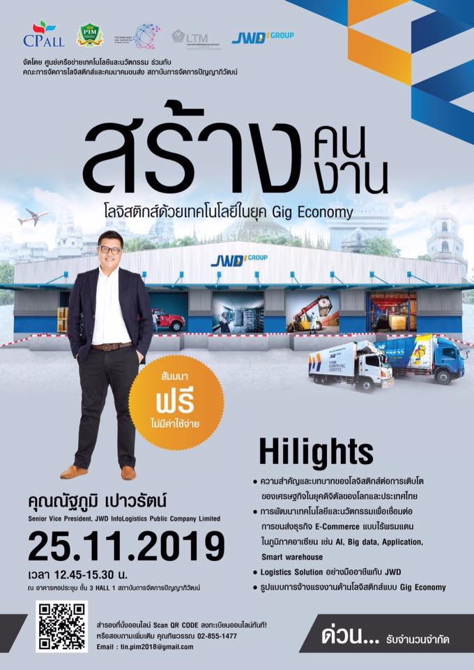 โดย คุณณัฐภูมิ เปาวรัตน์(Senior Vice President, JWD InfoLogistics Public Company Limited)ผู้มากประสบการณ์ในด้านการโลจิสติกส์ การขนส่ง และเทคโนโลยี ที่จะมาถ่ายทอดความรู้และประสบการณ์ให้ทันยุค Gig Economy