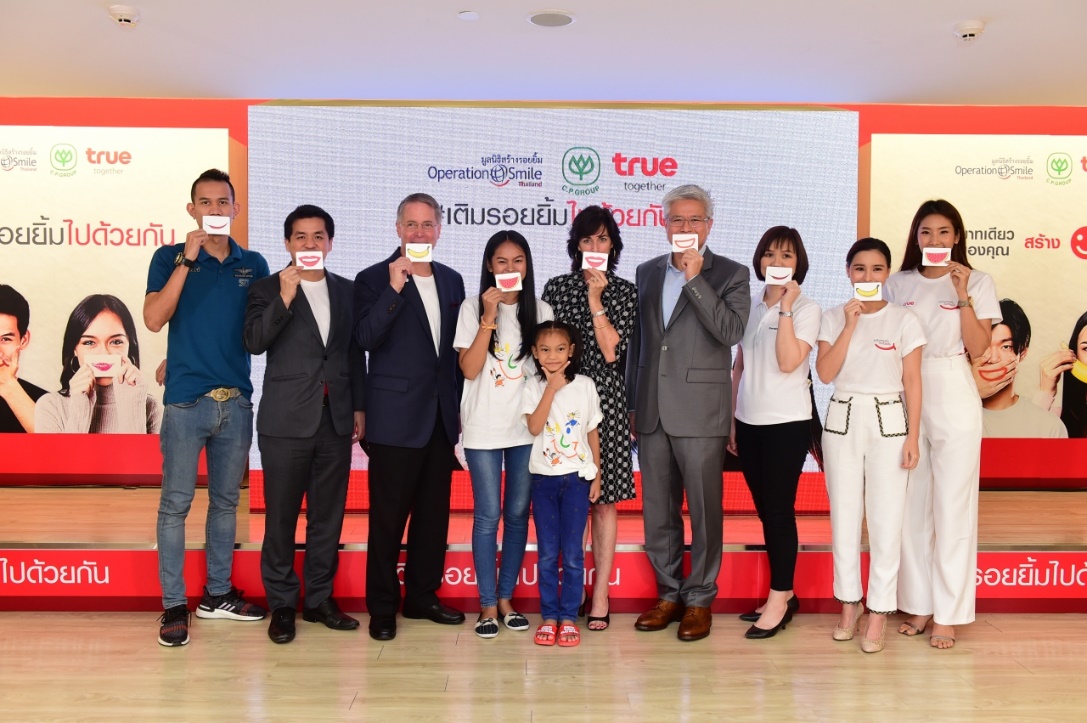 ทั้งนี้ ที่ผ่านมา เครือเจริญโภคภัณฑ์และทรู คอร์ปอเรชั่น ได้สนับสนุนการดำเนินงานมูลนิธิสร้างรอยยิ้ม ประเทศไทยอย่างต่อเนื่อง โดยปี 2552-2555 กลุ่มทรู จัดโครงการอมยิ้ม เชิญชวนร่วมบริจาค ณ ทรู ช้อป 89 สาขา ส่งมอบเงินเข้ามูลนิธิ ฯ รวม 2.8 ล้านบาท และปี 2558 เครือเจริญโภคภัณฑ์ และทรู คอร์ปอเรชั่น มอบเงินสนับสนุน 15 ล้านบาท อีกทั้งปี 2561 – 2562 เปิดช่องทางรับบริจาค ผ่านทรูมันนี่ วอลเล็ท ระบบ USSD และ SMS รวม 767,910 บาท พร้อมจัดสรรพื้นที่ในทรูช้อป และบนเว็บไซต์ weloveshopping.com ให้มูลนิธินำสินค้ามาจัดจำหน่าย รวมทั้งร่วมประชาสัมพันธ์ให้ประชาชนได้รับทราบพร้อมมีส่วนร่วมในการบริจาคผ่านสื่อต่างๆ ในเครือ และล่าสุด สนับสนุนอุปกรณ์และระบบสื่อสารทางไกล ให้เจ้าหน้าที่ในโรงพยาบาลส่งเสริมสุขภาพตำบล สามารถใช้ VDO Conference ติดต่อกับแพทย์ในโรงพยาบาลเครือข่ายในการติดตามผลการผ่าตัดคนไข้ เพื่อความสะดวกและลดค่าใช้จ่ายในการเดินทางอีกด้วย