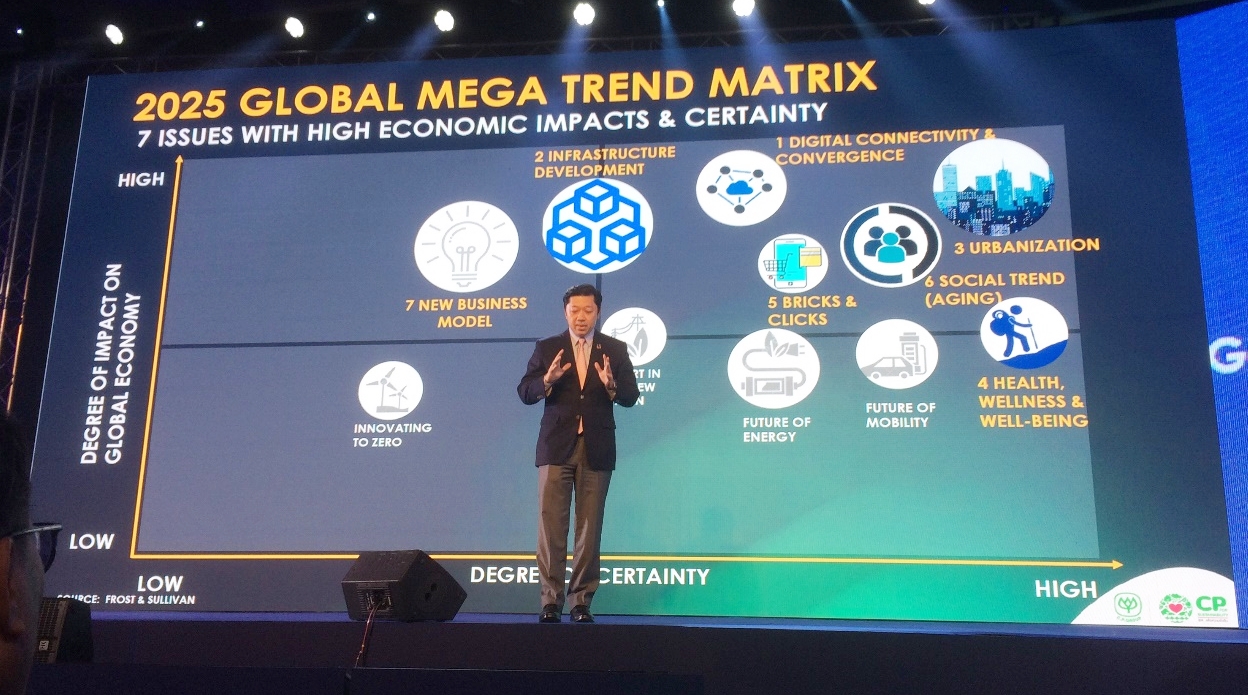 เมื่อดูเมกะเทรนต์ของโลกในช่วง 5 ปีข้างหน้า จะมีด้วยกัน 7 ข้อ ได้แก่ Digital Connectivity & Convergence, Infrastructure Development, Urbanization, Health wellness&well-being, Bricks&Clicks, Social Trend (Aging) และ New Business model