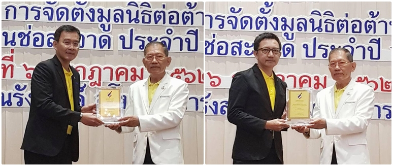 โดย คุณประพาฬพงษ์ มากนวล รองผู้อำนวยการ ฝ่ายกิจกรรมองค์กรเพื่อสังคม กลุ่มทรู ร่วมด้วยคุณชุมพล นิ่มสุพรรณ์ ผู้ช่วยผู้อำนวยการ ฝ่ายกิจกรรมองค์กรเพื่อสังคม กลุ่มทรู เป็นตัวแทนขึ้นรับโล่เกียรติคุณ