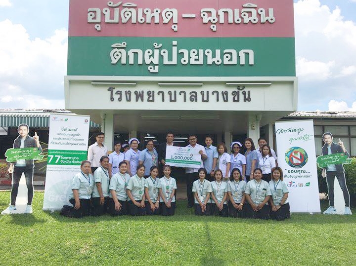 ยังคงเดินหน้ามอบเงินให้กับโรงพยาบาลทั่วประเทศจากโครงการลดวันละถุง คุณทำได้ เฟส2 โดยเมื่อวันที่ 7 ตุลาคม 2562 ตัวแทนซีพีออลล์เดินทางไปมอบเงิน 1 ล้านบาท จาก 77 ล้านบาท ให้โรงพยาบาลบางขัน จ.นครศรีธรรมราชเป็นที่เรียบร้อย สร้างความสุขให้กับทีมงานและทางโรงพยาบาล