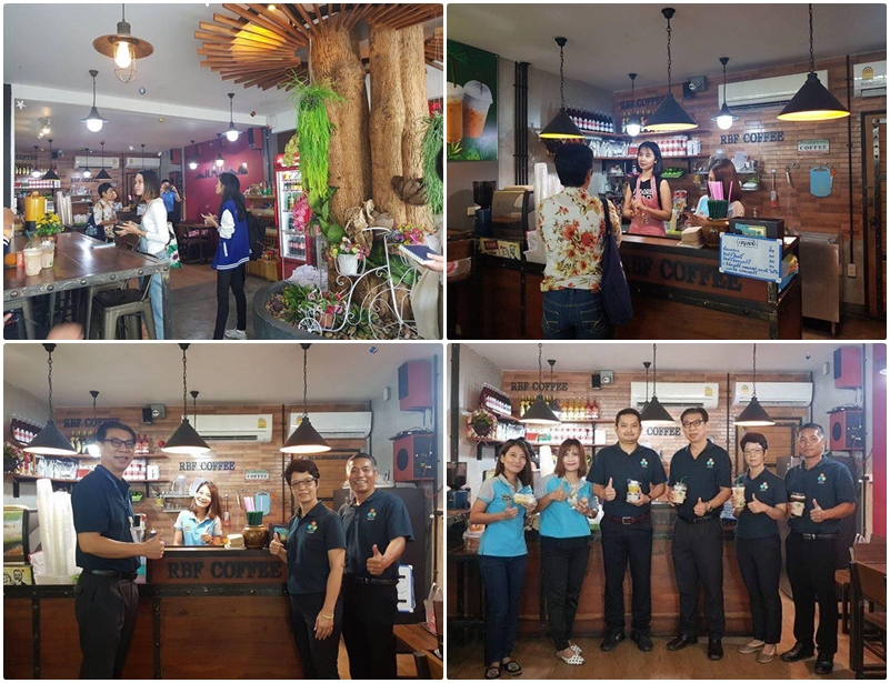 คุณสมพจน์ อินทรกำแหง รองกรรมการผู้จัดการ ซีพีเอฟ และ คุณชัยรัฎฐ์ ชาววัง รองผู้จัดการทั่วไป โรงงานผลิตอาหารสัตว์ราชบุรี ซีพีเอฟ ต้อนรับสื่อมวลชน เยี่ยมชม ร้านกาแฟเมืองโอ่ง “RBF COFFEE” ร้านกาแฟในโรงงานที่เกิดจากแนวคิดของผู้บริหารและพนักงานทำร้านกาแฟ เพื่อเป็นสถานที่พักผ่อนของพนักงาน เป็นที่ประชุมกลุ่มย่อย และรองรับลูกค้าที่มาติดต่องาน ได้ดื่มกาแฟสดคุณภาพราคาไม่แพง เริ่มต้นที่แก้วละ 20 บาท นอกจากนี้ ยังช่วยสร้างรายได้เสริมให้กับพนักงานที่ทำข้าวกล่อง ขนมหวานมาฝากขายที่้ร้านด้วย
