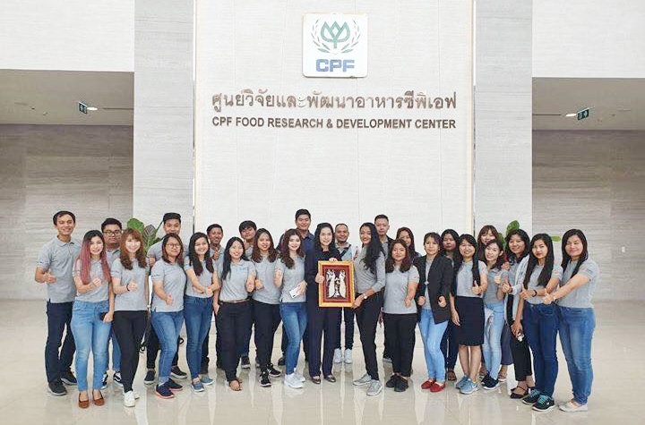 คณะนักศึกษาปริญญาโท มหาวิทยาลัย Strategy First ประเทศเมียร์มา เยี่ยมชม ศูนย์วิจัยและพัฒนาอาหาร หรือ CPF RD Center อ.วังน้อย จ.พระนครศรีอยุธยา ศูนย์รวมเทคโนโลยีสำหรับการสร้างสรรค์นวัตกรรมอาหารอย่างครบครัน รวมถึงมีโรงงานต้นแบบ (Pilot Plant) ที่สามารถผลิตนวัตกรรมอาหารจากงานวิจัยพร้อมจำหน่ายเพื่อทดลองตลาดได้ทันที และแลกเปลี่ยนมุมมองการบริหารงาน ตลอดจนการเสริมศักยภาพธุรกิจอาหารของซีพีเอฟและเครือซีพี ในประเทศเมียร์มา โดยมี คุณศิรภัสสร สกุลวิวรรธน์ ผู้ช่วยกรรมการผู้จัดการ ด้านการบริหาร ศูนย์วิจัยและพัฒนาอาหารซีพีเอฟ ให้การต้อนรับ