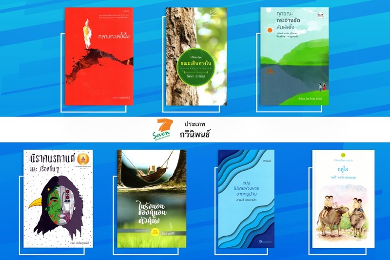 ประเภทกวีนิพนธ์ จำนวน 7 ผลงาน ได้แก่ กลางทะเลขี้ผึ้ง โดย ธาร ธรรมโฆษณ์ สำนักพิมพ์Artbook, ขณะเดินทางใน โดย วัฒนา ธรรมกูร สาระฅนสำนักพิมพ์, ทุกขณะ กระจ่างชัด สัมผัสใจ โดย รินศรัทธา กาญจนวตี สำนักพิมพ์ออนอาร์ต , นิราศนรกานต์และเรื่องอื่น ๆ โดย จามรี ต้นไพฑูรย์ดิถี สำนักพิมพ์ยักษ์วรรณยุกต์, ในรังนอนของหนอนตัวหนึ่ง โดย นิตา มาศิริ, แม่งูไม่เคยห่างหายจากหมู่บ้าน โดย อานนท์ นานมาแล้ว สำนักพิมพ์ตำหนัก, ฤดูใจ โดย กุดจี่ สำนักพิมพ์ไม้ยมก