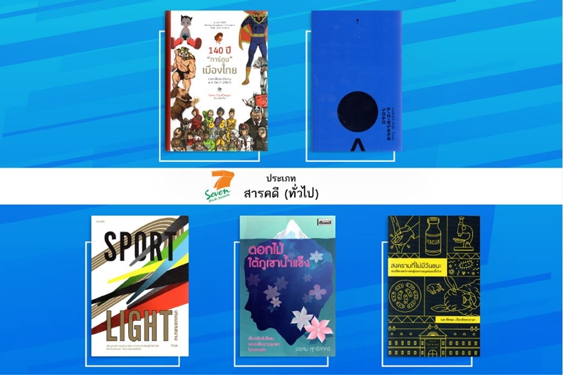 ประเภทสารคดี (ทั่วไป) จำนวน 5 ผลงาน ได้แก่ 140 ปี “การ์ตูนเมืองไทย” โดย ไพศาล ธีรพงษ์วิษณุพร สำนักพิมพ์ศรีปัญญา, HOMO FINISHERS สายพันธุ์เข้าเส้นชัย โดย นิ้วกลม สำนักพิมพ์คู้บ, SPORTLIGHT เกมนอกสนาม โดย วิศรุต สินพงศพร สำนักพิมพ์แซลมอน, ดอกไม้ใต้ภูเขาน้ำแข็ง โดย อรสม สุทธิสาคร สำนักพิมพ์สารคดี, สงครามที่ไม่มีวันชนะ ประวัติศาสตร์การต่อสู้ระหว่างมนุษย์และเชื้อโรค โดย นพ.ชัชพล เกียรติขจรธาดา สำนักพิมพ์ชัชพลบุ๊คส์