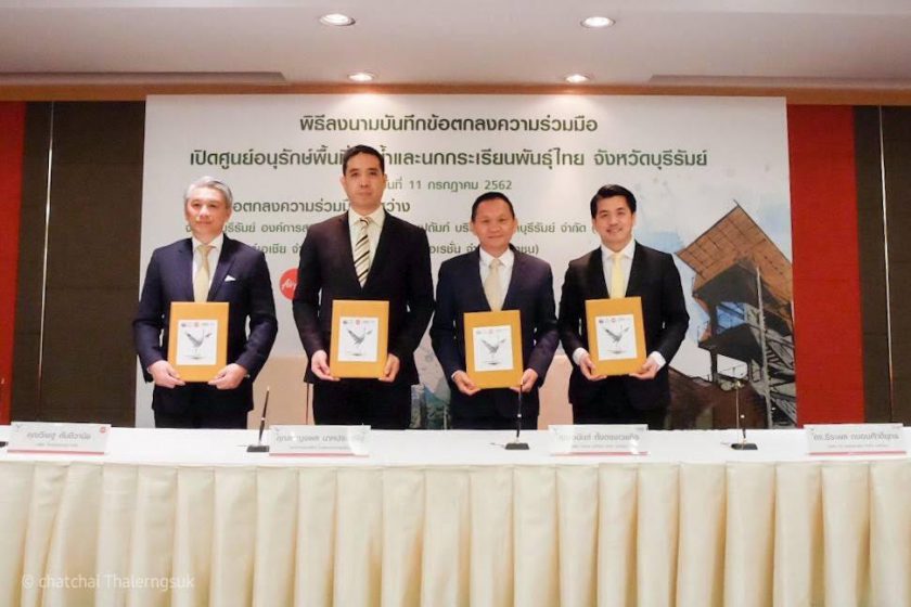 เมื่อวันที่ 11 กรกฎาคม 2562 องค์การสวนสัตว์ ในพระบรมราชูปถัมภ์ฯ โดย คุณเบญจพล นาคประเสริฐ ผู้อำนวยการ พร้อมด้วย กลุ่มทรู โดย ดร.ธีระพล ถนอมศักดิ์ยุทธ์ หัวหน้าคณะผู้บริหาร ด้านนวัตกรรมและความยั่งยืน / บริษัท น้ำตาลบุรีรัมย์ จำกัด (มหาชน) โดย คุณอนันต์ ตั้งตรงเวชกิจ ประธานกรรมการบริหาร และกรรมการผู้จัดการ และ บริษัท ไทยแอร์เอเชีย จำกัด โดย คุณวิเชฐ ตันติวานิช ประธานกรรมการ ลงนามบันทึกข้อตกลงความร่วมมือการจัดกิจกรรมเปิดศูนย์อนุรักษ์พื้นที่ชุ่มน้ำและนกกระเรียนพันธุ์ไทย จังหวัดบุรีรัมย์ และปล่อยนกกระเรียนพันธุ์ไทยคืนสู่ธรรมชาติ ประจำปี 2562 เพื่อสร้างความตระหนักในการอนุรักษ์นกกระเรียนพันธุ์ไทยและพื้นที่ชุ่มน้ำ