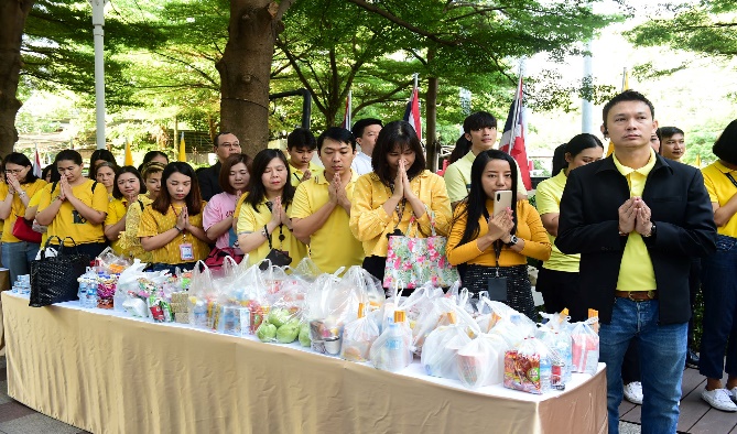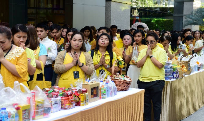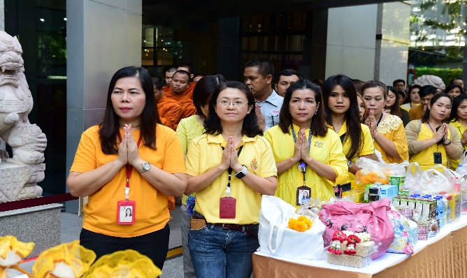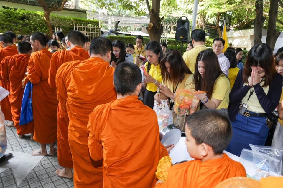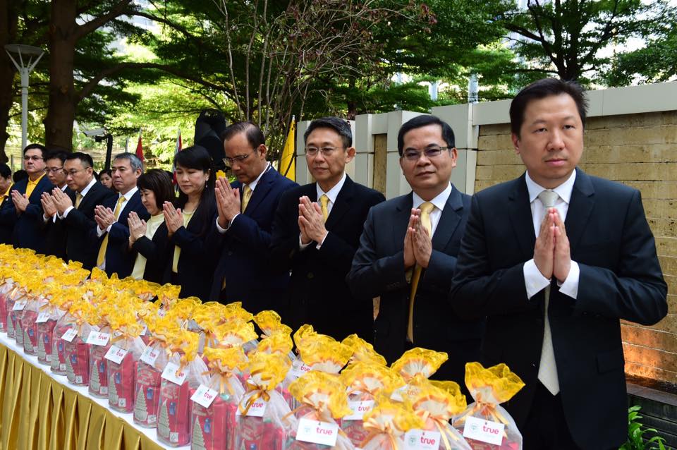 คุณสุเมธ ภิญโญสนิท ประธานคณะผู้บริหาร กลุ่มธุรกิจพืชครบวงจร (ข้าวโพด) คุณจิรากร โกศัยเสวี ประธานกรรมการ บริษัท เจริญโภคภัณฑ์การเกษตร จำกัด คุณจิระศักดิ์ เสงี่ยมกิตติกุล ประธานคณะผู้บริหาร บริษัทเจริญโภคภัณฑ์วิศวกรรม จำกัด คุณขุนศรี ทองย้อย ประธานคณะผู้บริหาร บริษัท เจริญโภคภัณฑ์การเกษตร จำกัด และเหล่าพนักงานจากกลุ่มธุรกิจต่างๆ พร้อมใจใส่เสื้อเหลือง และร่วมทำบุญตักบาตรพระสงฆ์ จำนวน ๙๙ รูป เพื่อบำเพ็ญกุศลอุทิศถวาย และน้อมรำลึกในพระมหากรุณาธิคุณอย่างหาที่สุดมิได้ ของพระบาทสมเด็จพระบรมชนกาธิเบศร มหาภูมิพลอดุลยเดชมหาราช บรมนาถบพิตร เนื่องในโอกาสวันคล้ายวันสวรรคต ๑๓ ตุลาคม ๒๕๖๒