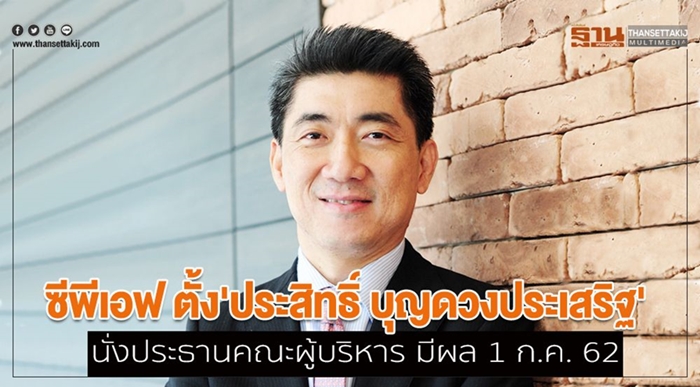 บริษัท เจริญโภคภัณฑ์อาหาร จำกัด (มหาชน) หรือ ซีพีเอฟ แจ้งตลาดหลักทรัพย์แห่งประเทศไทย เรื่องการแต่งตั้งผู้บริหารระดับสูงว่า ที่ประชุมคณะกรรมการบริษัท เมื่อวันที่ 12 มิถุนายน 2562 มีมติอนุมัติการแต่งตั้ง คุณประสิทธิ์ บุญดวงประเสริฐ ให้ดำรงตำแหน่ง ประธานคณะผู้บริหาร โดยมีผลตั้งแต่วันที่ 1 กรกฎาคม 2562 เป็นต้นไป