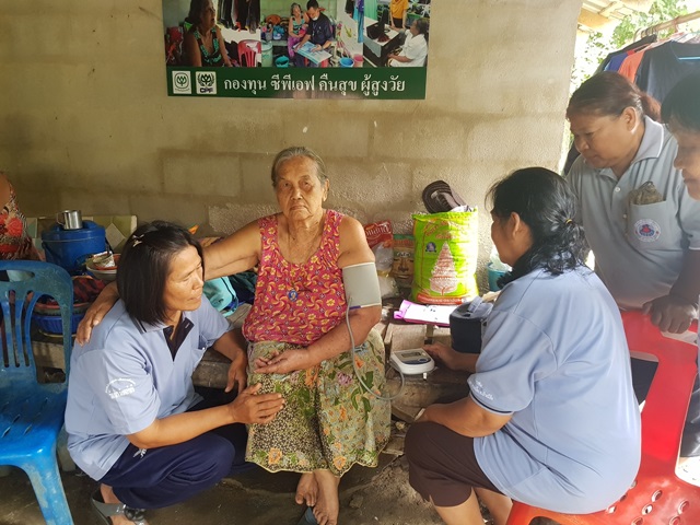 ชำนาญ หลีล้วน ผู้อำนวยการ รพ.สต. ตำบลดอนกระเบื้อง กล่าวว่า ซีพีเอฟ เข้ามาดูแลผู้สูงวัยในชุมชน ช่วยส่งเสริมคุณภาพชีวิตที่ดีขึ้นทั้งด้านสุขภาพและด้านจิตใจของผู้สูงวัยได้เป็นอย่างดี เช่น กรณีของคุณยายกัลยา เดิมมีอาการหมอนรองกระดูกทับเส้นประสาทแต่ไม่ยอมรับการรักษาเนื่องจากไม่มีเงิน ทางโรงพยาบาลส่งเสริมสุขภาพตำบลฯ ได้เข้าไปรักษาตามอาการอย่างต่อเนื่อง จึงช่วยให้สุขภาพดีขึ้นตามลำดับ แต่ยังเหลือปัญหาสุขภาพทางใจ แต่หลังจากได้รับการช่วยเหลือจากซีพีเอฟ และกำลังใจจากคนในชุมชน คุณยายกัลยาก็มีสุขภาพทางใจที่ดีขึ้น