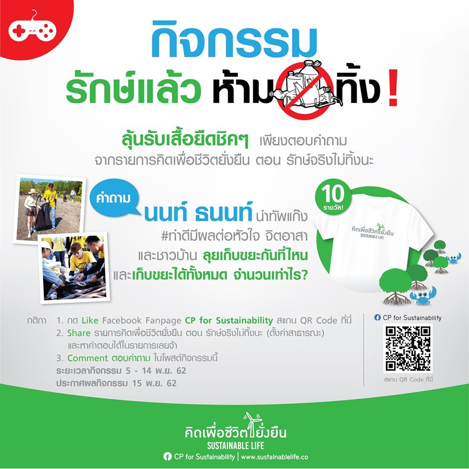 1. กด Like FB Page : CP for Sustainability https://www.facebook.com/CPGroupSustainability/