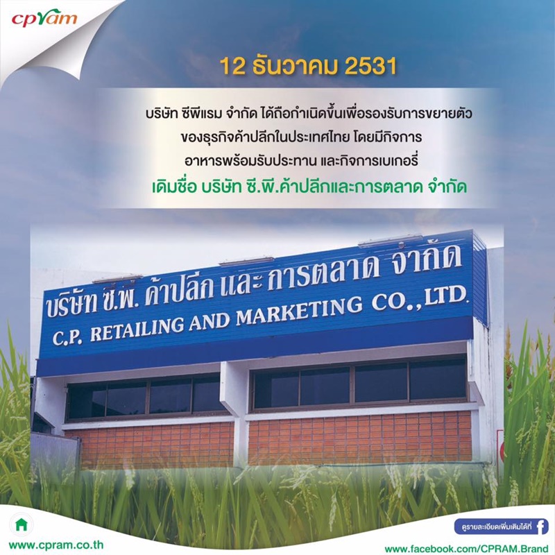 เมื่อวันที่ 12 ธันวาคม 2562 ที่ผ่านมา บริษัทซีพีแรมซึ่งประกอบกิจการอาหารพร้อมรับประทานและกิจการเบเกอรี่ ของกลุ่มซีพีออลล์ได้ดำเนินการครบ 32 ปี โดยมีชื่อเดิมว่าบริษัทซี.พี.ค้าปลีกและการตลาด บริษัทได้พัฒนาผลิตอาหารมาอย่างต่อเนื่องจนมีผลิตภัณฑ์ออกมามากมาย ต่อมาปี 2556 ได้เปลี่ยนชื่อเป็นบริษัทซี.พี.แรม ทั้งนี้บริษัทได้วางรากฐานด้านการคุณภาพ การพัฒนาด้านนวัตกรรมจนเกิดการสร้างสรรค์นวัตกรรมมากมายภายใต้การสร้างวัฒนธรรมนวัตกรรม โดยใช้นวัตกรรมเป็นตัวขับเคลื่อนองค์กรจนมีอายุครบ 30 ปี บริษัทจึงได้วางแนวทางการทำงานภายใต้แนวคิดศรีอัจฉริยะ เพื่อมุ่งสู่การเป็นองค์กรที่ยั่งยืน