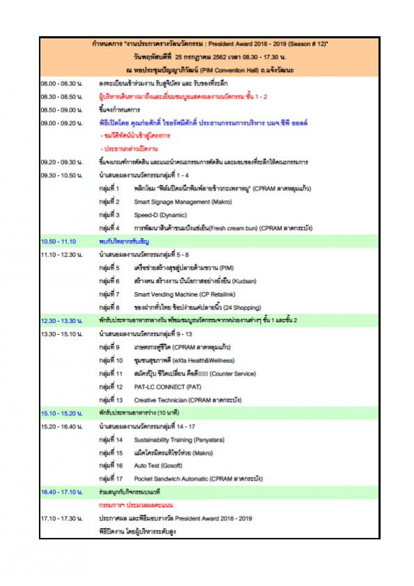 ซีพีออลล์เตรียมจัดงานประกวดและตัดสินรางวัลนวัตกรรม President Awards 2018-2019 (Season 12) ภายใต้ Theme งาน CP ALL Innovation Days