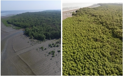 โครงการปลูกป่าชายเลน ที่ต.บางหญ้าแพรก จ. สมุทรสาคร อาศัยนวัตกรรมมาใช้ในการปลูกป่า ซึ่งเป็นพื้นที่ที่ยากต่อการเติบโตของต้นไม้ เนื่องจากพื้นที่ดังกล่าวเป็นพื้นที่อ่าวตัว ก. มีอัตราการกัดเซาะชายฝั่งสูงและปัญหาขยะ ทำให้ปลูกป่าในช่วงแรกๆไม่ได้ผล ระยะเวลา 5 ปีจากวันนั้น จนถึงวันนี้ ซีพีเอฟสามารถอนุรักษ์ ฟื้นฟู และเพิ่มพื้นที่ปลูกใหม่ที่ ต.บางหญ้าแพรก 104 ไร่ ทรัพยากรธรรมชาติกลับสู่ความอุดมสมบูรณ์อีกครั้ง สัตว์น้ำทั้ง กุ้ง หอย ปู ปลา มีจำนวนเพิ่มขึ้น เป็นผลดีกับชาวบ้านซึ่งส่วนใหญ่มีอาชีพประมง