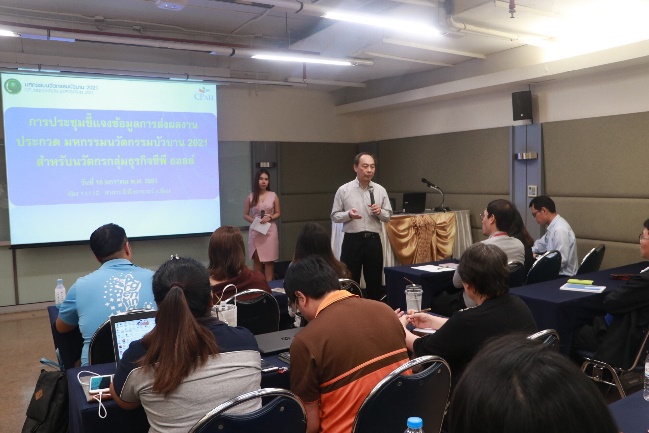 ถัดจากนั้น คุณชยุตม์ กฤษอร่ามเรือง กรรมการและเลขานุการ คณะกรรมการวิชาการ มหกรรมนวัตกรรมบัวบาน2021 ชี้แจงภาพรวมและกำหนดการจัดงานมหกรรมนวัตกรรมบัวบานเครือเจริญโภค-ภัณฑ์ 2021 รวมถึงแนวทางการส่งผลงาน ข้อมูลการประกวดผลงาน การแบ่งประเภทรางวัล และเกณฑ์ของแต่ละประเภทรางวัล ทั้ง3 ด้าน รวมทั้งกำหนดการ ขั้นตอน ระยะเวลาการส่งผลงานของนวัตกรและแนวทางการเขียนใบสมัคร