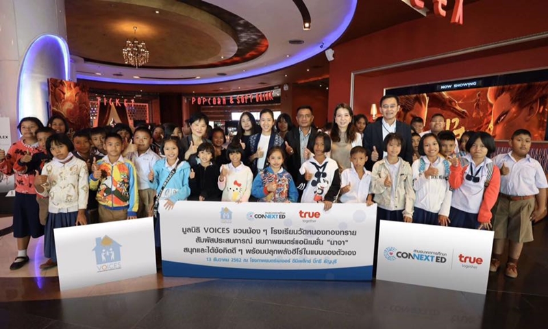มูลนิธิเพื่อเด็กและสตรี VOICES โดย คุณบุษดี เจียรวนนท์ ประธานกรรมการมูลนิธิฯ และที่ปรึกษาโครงการสานอนาคตการศึกษา คอนเน็กซ์ อีดี CONNEXT ED พร้อมด้วย คุณกมลนันท์ เจียรวนนท์ และคุณสวรินทร์ ภุมรินทร์ ผู้ก่อตั้งมูลนิธิฯ ร่วมเปิดโลกทัศน์เพื่อการเรียนรู้แก่เยาวชน นำนักเรียนรวมกว่า 60 คนจากโรงเรียนวัดหนองทองทราย จ.นครนายก หนึ่งในโรงเรียนของโครงการสานอนาคตการศึกษา CONNEXT ED ภายใต้การดูแลของกลุ่มทรู พร้อมด้วยคณะครู ชมภาพยนตร์แอนิเมชัน ฟอร์มยักษ์แห่งปีจากประเทศจีน เรื่อง “นาจา” (Ne Zha) เปิดโอกาสให้น้องๆ ได้เสริมสร้างประสบการณ์ และเรียนรู้ข้อคิดจากการรับชม ณ โรงภาพยนตร์เมเจอร์ ซีนีเพล็กซ์ อ.ธัญบุรี จ.ปทุมธานี