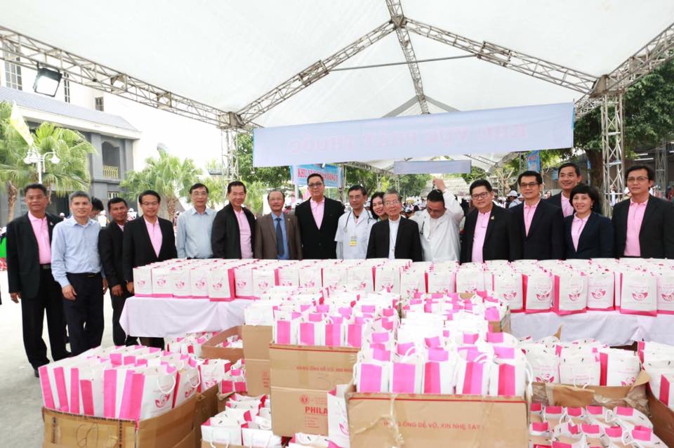 คุณสุขสันต์ เจียมใจสว่างฤกษ์ รองประธานคณะกรรมการบริหาร ซีพีเอฟ พร้อมด้วย คุณมนตรี สุวรรณโพธิ์ศรี กรรมการผู้จัดการ และ คุณ Le Nhat Thuy ประธานกองทุน ซี.พี. เวียดนาม เพื่อการกุศล ร่วมเปิดโครงการการกุศล “คนพิการต้อนรับเทศกาล Noel 2019” จัดโดย กองทุน ซี.พี.เวียดนาม เพื่อการกุศล ร่วมกับ คณะกรรมการการกุศลเพื่อสังคม – Caritas Thai Binh แพทย์อาสาทั้งในและต่างประเทศ และอาสาสมัคร เพื่อให้คำปรึกษา ตรวจสุขภาพ การรักษาและจ่ายยา ให้แก่คนพิการและผู้ยากไร้ชาวเวียดนาม กว่า 6,000 คน