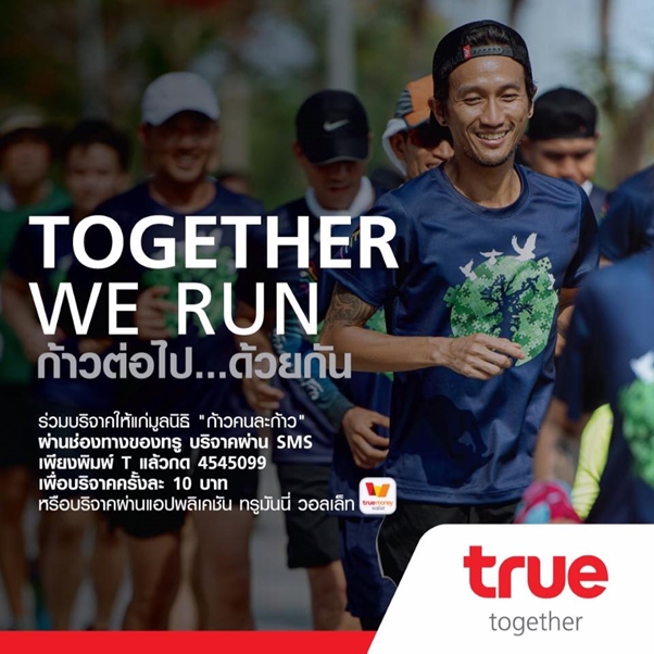ด้วยการส่งรถโมบายล์ดูแลสัญญาณตลอดเส้นทางการวิ่ง และสนับสนุนซิมการ์ด จากทรูมูฟ เอช พร้อมมอบน้ำดื่มทรู ตลอดทั้ง 5 ภูมิภาคทั่วประเทศ นอกจากนี้ ยังได้เปิดช่องทางรับบริจาคเงิน ผ่าน SMS และทรูมันนี่ วอลเล็ท “ทรู” ให้กับ “มูลนิธิก้าวคนละก้าว”