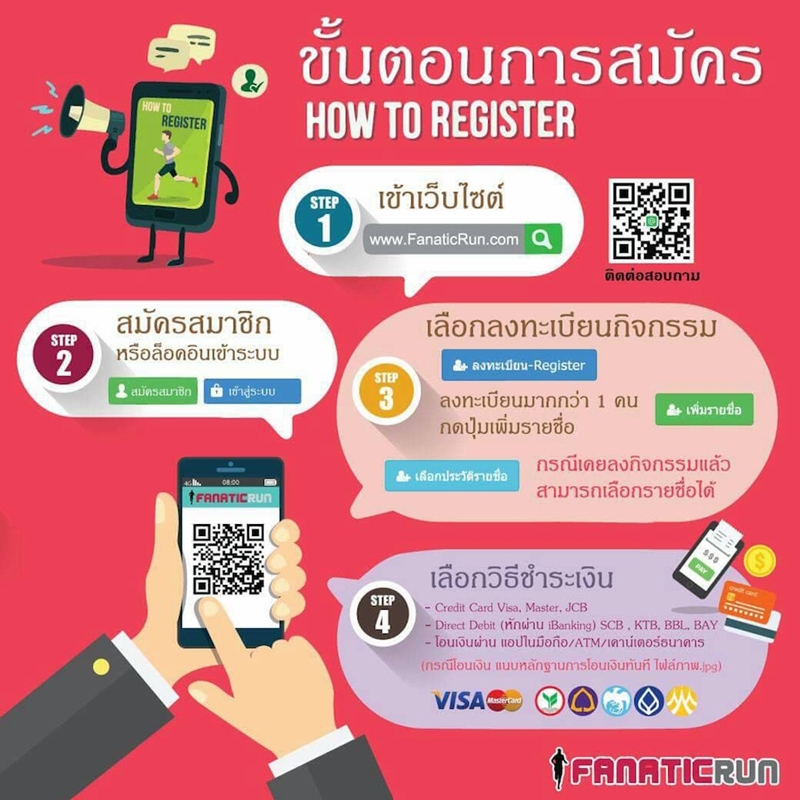 3.สามารถโอนเงินเข้าที่ ธนาคารกสิกรไทย เลขบัญชี 052-395-469-5 ชื่อบัญชี FANATIC RUN CO.,LTD.(เฟนาติก รัน)