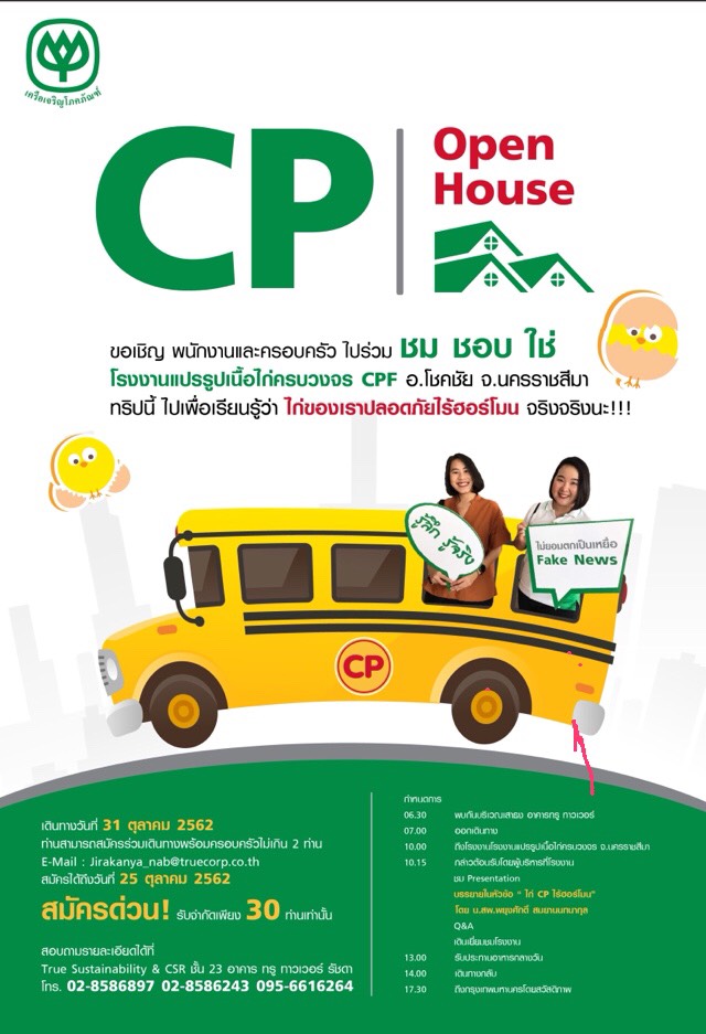 ขอเชิญชวนพนักงานพร้อมครอบครัวๆปเยี่ยมชม “โรงงานแปรรูปเนื้อไก่ครบวงจร” ซีพีเอฟ จ.นครราชสีมาไปเรียนรู้ว่า ไก่ของซีพีสะอาด ปลอดภัย ไร้ฮอร์โมน