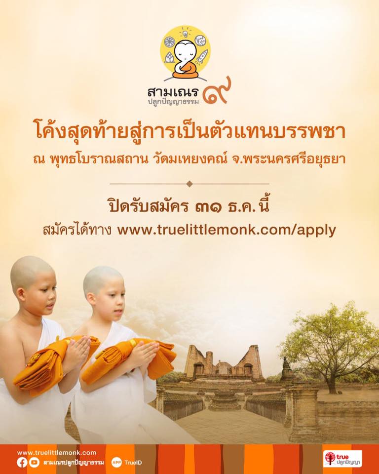 ดูรายละเอียด และ สมัครออนไลน์ ได้ที่ >> http://www.truelittlemonk.com/apply (ไม่มีค่าใช้จ่ายใด ๆ ทั้งสิ้น)