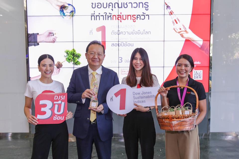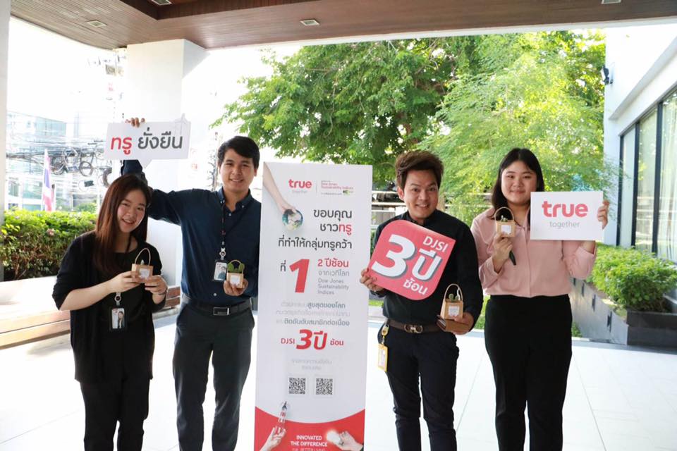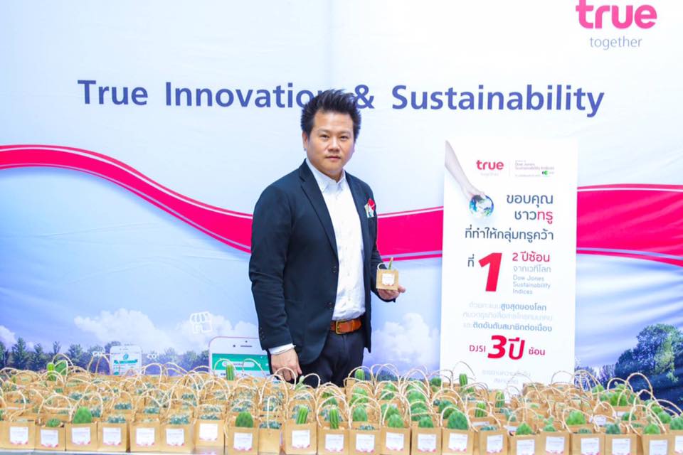 เมื่อวันที่ 16 กันยายน 2562 คุณวิเชาวน์ รักพงษ์ไพโรจน์ รองประธานคณะกรรมการบริหาร พร้อมด้วย ดร.กิตติณัฐ ทีคะวรรณ และคุณศิริพจน์ คุณากรพันธุ์ กรรมการผู้จัดการใหญ่ (ร่วม) ร่วมกันขอบคุณและมอบต้นกระบองเพชร (แคคตัส)ต้นไม้ที่ดูแลง่าย ช่วยสร้างสีเขียวลดก๊าซคาร์บอน ดีต่อโลก ดีต่อใจ และสื่อถึงการเติบโตอย่างยั่งยืนไปพร้อมกัน แก่เพื่อนพนักงานชาวทรู ที่เป็นพลังสำคัญในการปฏิบัติหน้าที่และร่วมสนับสนุนให้กลุ่มทรู ได้รับคัดเลือกเป็นสมาชิกดัขนีความยั่งยืนระดับโลกต่อเนื่องเป็นปีที่ 3 ทั้ง DJSI หมวดธุรกิจสื่อสารโทรคมนาคมประเภท Emerging Markets