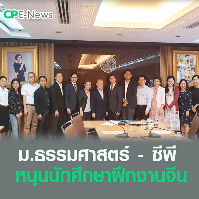 ทั้งนี้ มหาวิทยาลัยธรรมศาสตร์ ได้ร่วมกับเครือเจริญโภคภัณฑ์ สนับสนุนให้นักศึกษาไปฝึกอบรมปฏิบัติงานจริงที่ประเทศจีนมาอย่างต่อเนื่องรวม 3 รุ่น จาก 4 คณะ ได้แก่ คณะศิลปศาสตร์ คณะวิศวกรรมศาสตร์ คณะพาณิชยศาสตร์และการบัญชี และคณะวิทยาศาสตร์และเทคโนโลยี โดยปี 2563 นับเป็นรุ่นที่ 4 ได้เพิ่มความร่วมมือเป็น 7 คณะ โดยเพิ่มอีก 3 คณะ ได้แก่ คณะนิติศาสตร์ คณะสถาปัตยกรรมและผังเมือง และวิทยาลัยนานาชาติปรีดี พนมยงค์ เพื่อเปิดโอกาสให้เยาวชนรุ่นใหม่ได้รับประสบการณ์ที่ดีและได้เรียนรู้เชิงธุรกิจครบทุกขั้นตอน ซึ่งทำให้ได้องค์ความรู้ที่มีคุณค่าและได้ประโยชน์มากกว่าในห้องเรียนอย่างแน่นอน