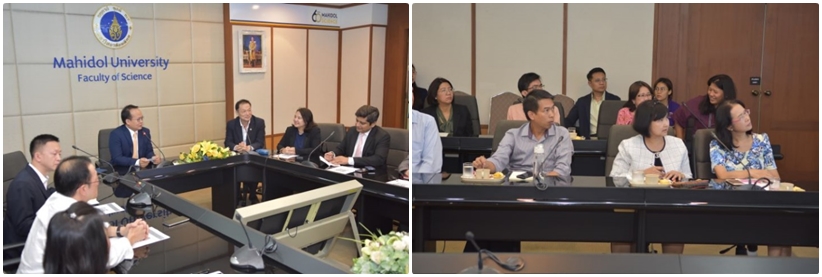 คณะวิทยาศาสตร์ มหาวิทยาลัยมหิดล นำโดย รองศาสตราจารย์ ดร.พลังพล คงเสรี คณบดีคณะวิทยาศาสตร์ ให้การต้อนรับ Dr. John Yue Jun Jiang CPG Chief Digital Officer, CPG Deputy CTO to CPG CEO, True Corp. Chief R&D Officer และคณะผู้บริหารฝ่าย R&D เครือเจริญโภคภัณฑ์ กลุ่มธุรกิจแนวหน้าของประเทศไทย ซึ่งมีการดำเนินธุรกิจที่หลากหลาย ทั้งอุตสาหกรรมการผลิตและการบริการ โดยเฉพาะด้านเกษตรอุตสาหกรรมและอาหารที่ใหญ่ที่สุดในประเทศไทย รวมถึงธุรกิจยาและเวชภัณฑ์ พร้อมประชุมหารือความร่วมมือด้านการวิจัยเกี่ยวกับสมาร์ทฟาร์ม อาหารในอนาคต ไปจนถึงบรรจุภัณฑ์พลาสติกที่ย่อยสลายได้ทางชีวภาพ เครื่องสำอาง